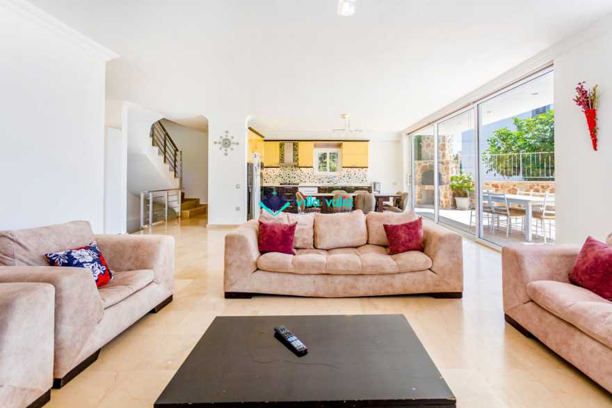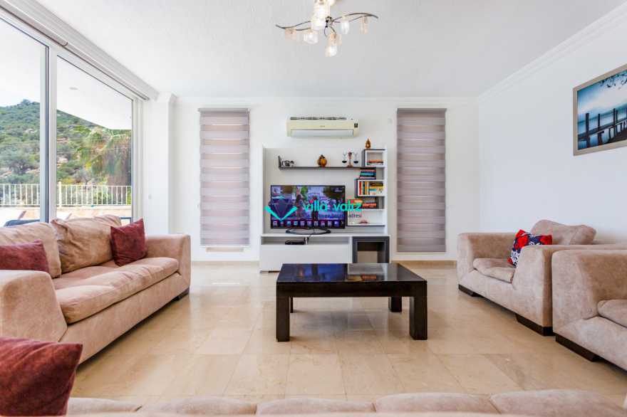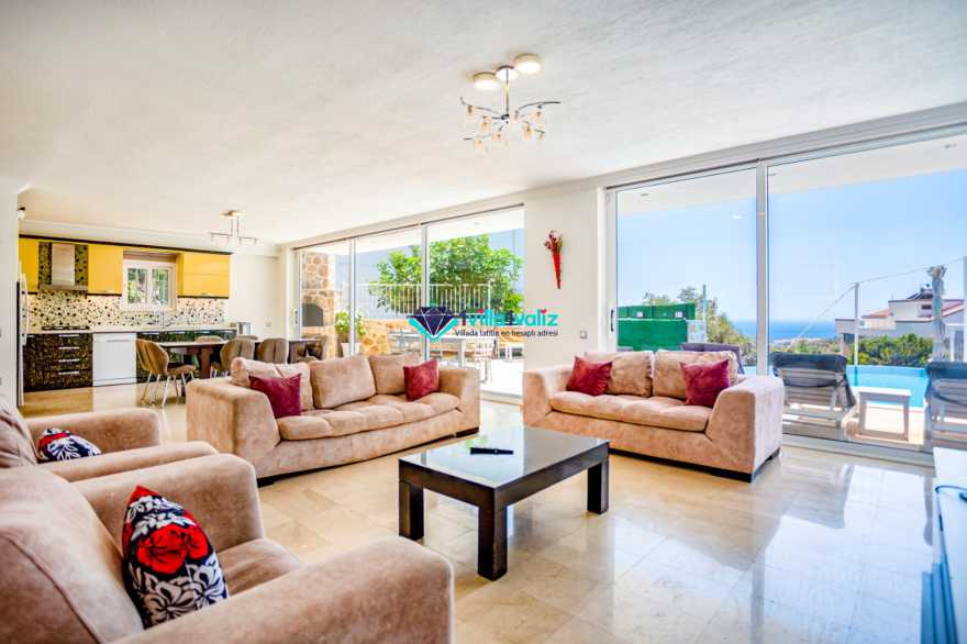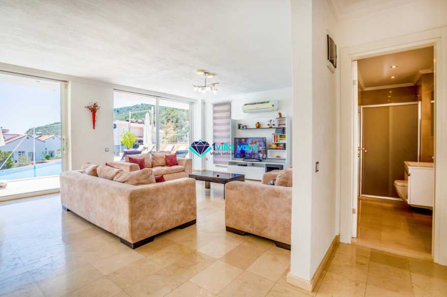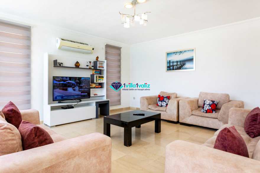Salonumuzda oturma grubu,klima,LCD Tv,sehpa,uydu alıcı,banyo ve tuvalet bulunmaktadır.Havuz terasına çıkış yapılabilmektedir.