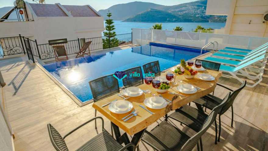 Villa Nilla , 4 yatak odalı olup 9 kişinin konaklayabileceği şık ve modern bir şekilde dizayn edilmiştir. Villamız katlarından eşsiz deniz ve Kalkan manzarası siz misafirlerimize huzur dolu bir tatil fırsatı sunmaktadır. 2 adet süit yatak odasında jakuzisi bulunan villamız Kalkan merkeze ve denize yürüme mesafesinde olup dilediğiniz zaman plajda deniz keyfini sürmenizi sağlayacaktır. Kalabalık Aileler ve arkadaşlar grupları için ideal bir seçenek olan villamız sizleri beklemektedir.