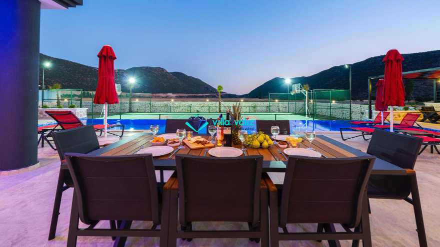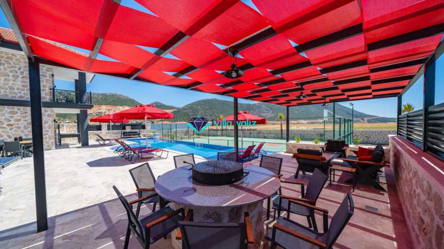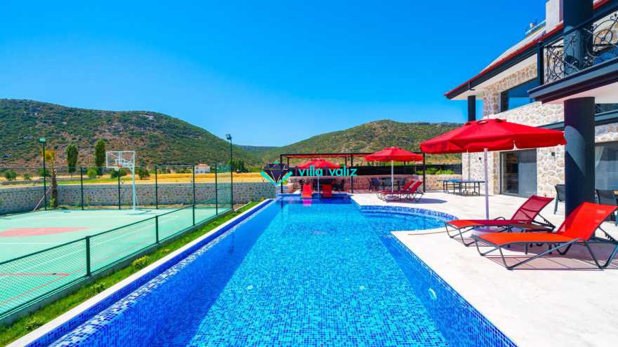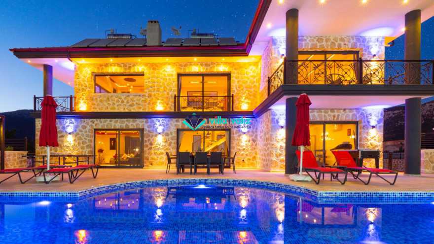 Villamız Kalkan Bezirgan mevkisin de konumlanmıstır.3 yatak odalı 6 kişilik kapasiteye sahiptir. Kiralık yazlık villamız ultra lüks özelliklere sahiptir. Kalabalık aileler için oldukça rahat konforlu eşyalar kullanılmıştır. Süit yatak odamızın bir tanesinde jakuzi bulunmaktadır. Özel havuz ve havuz terasından oldukça geniş olup basketbol sahası da bulunmaktadır. Villamızda sauna ve tenis masası ayrı bir alternatiflerdendir.