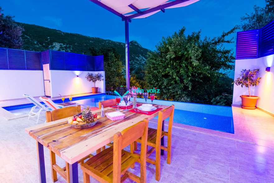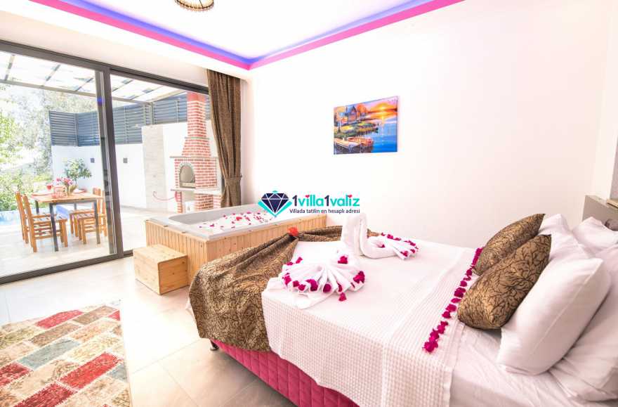 Kalkan İslamlar bölgesinde konumlanmıştır. 1 yatak odalı 2 kişilik balayı villasıdır. Çift kişilik yatak odasında jakuzi bulunmaktadır .Özel yüzme havuzu ve havuz terası muhafazakar hale getirilmiştir. Doğa içerisinde sakin sessiz kuş seslerinin hakim olan villamız kalkan merkeze araçla 10 dakika uzaklıktadır. Villamızın havuz terası oldukça geniş olup sizlere ayrıcalık sunmaktadır.