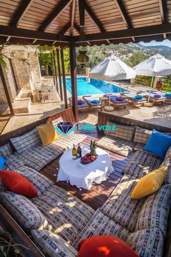 Harika deniz, doğa ve panoramik Kalkan manzarasına sahip olan villamız sessiz, sakin bir konumdadır. Şehir merkezine yakın olmasına rağmen etrafında çok fazla villa bulunmamaktadır. Villa sakin bir ortamda olduğu ve havuz terası göz önünde olmadığı için korunaklı olarak misafirlerimize sunulmaktadır. Villamız da 6 yatak odası,1 Amerikan mutfak & salon, özel yüzme havuzu, köşk ve bahçe bulunmaktadır. Kalkan’ ın eşsiz manzarasına bakan Villa Otantik, yüksek konforlu bir tatil deneyimi sunuyor