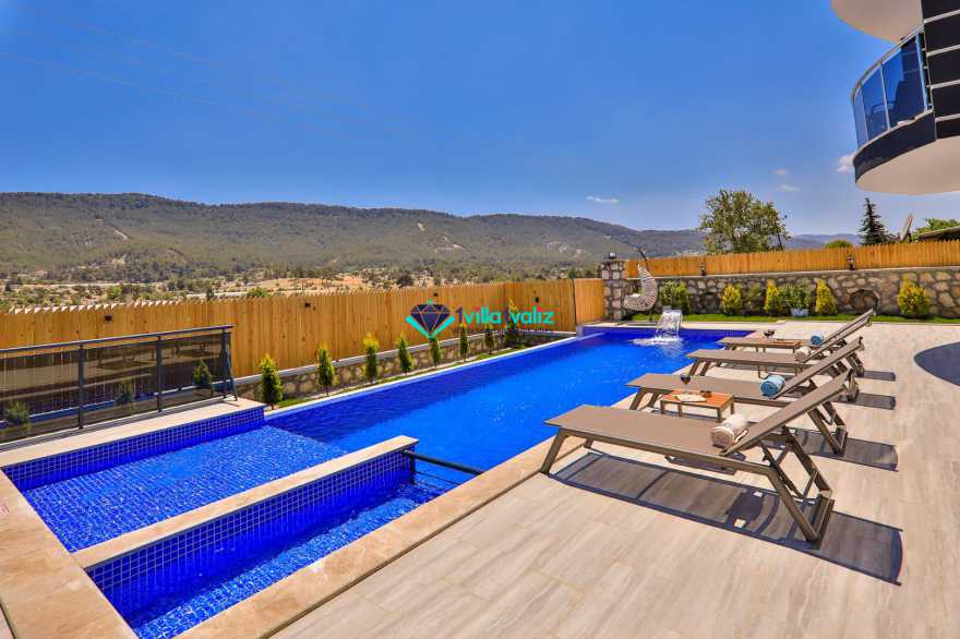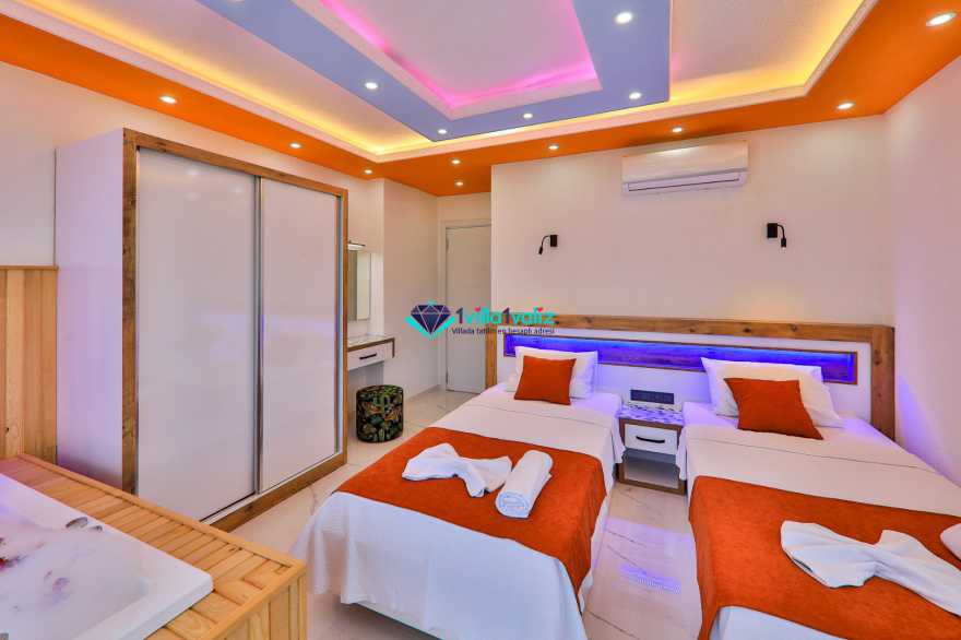 Kiralık yazlık villamız Sarıbelen bölgesinde konumlanmıştır. 2 yatak odalı 4 kişilik kapasiteye sahiptir. 2021 yılında inşaatı tamamlanmıştır. Muhafazakar ailelere özel olarak havuz terası ve özel yüzme havuzu tamamen korunaklıdır. Sakin sessiz doğa içerisinde olan villamız oldukça lüks kaliteli eşyalar kullanılmıştır. Balayı çiftlerine özel olarak 2 adet jakuzi bulunmaktadır. Çocuklu ailelere özel çocuk havuzu bulunmaktadır.