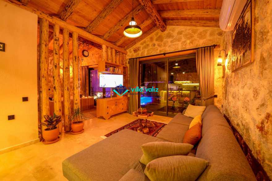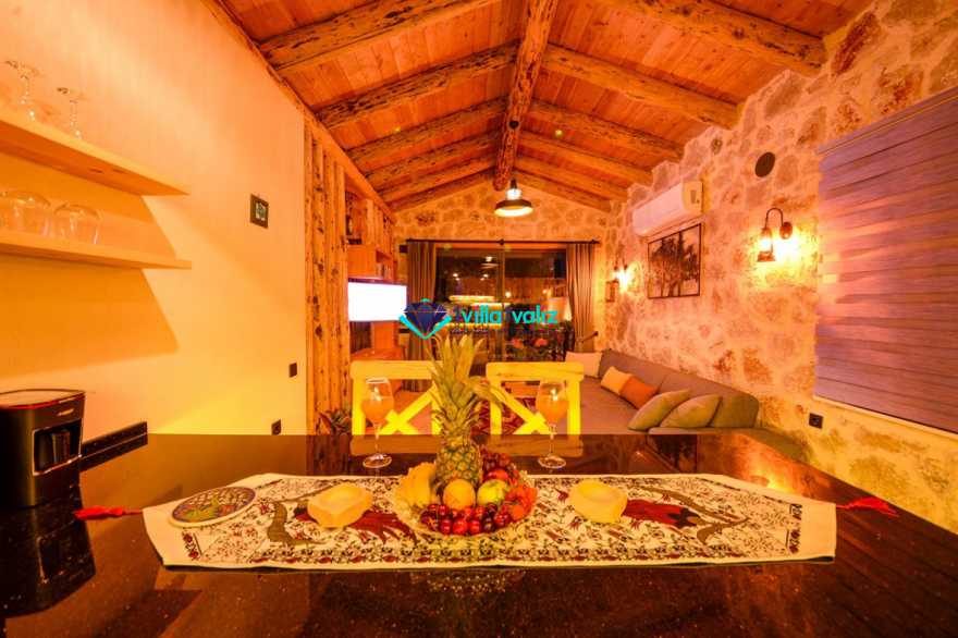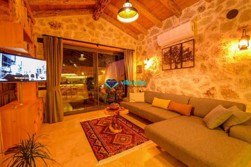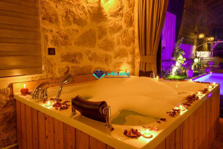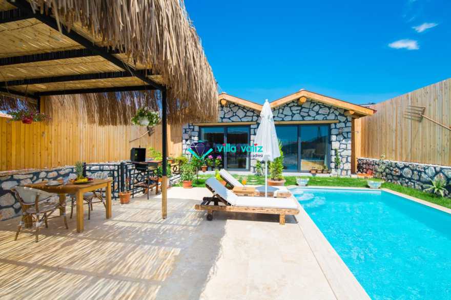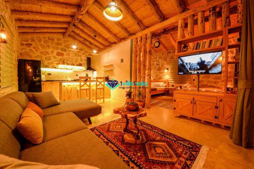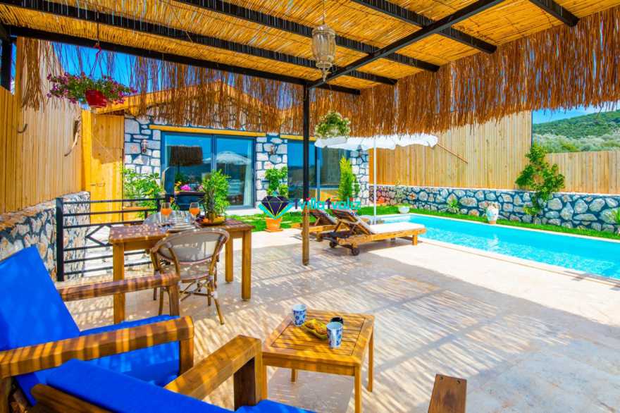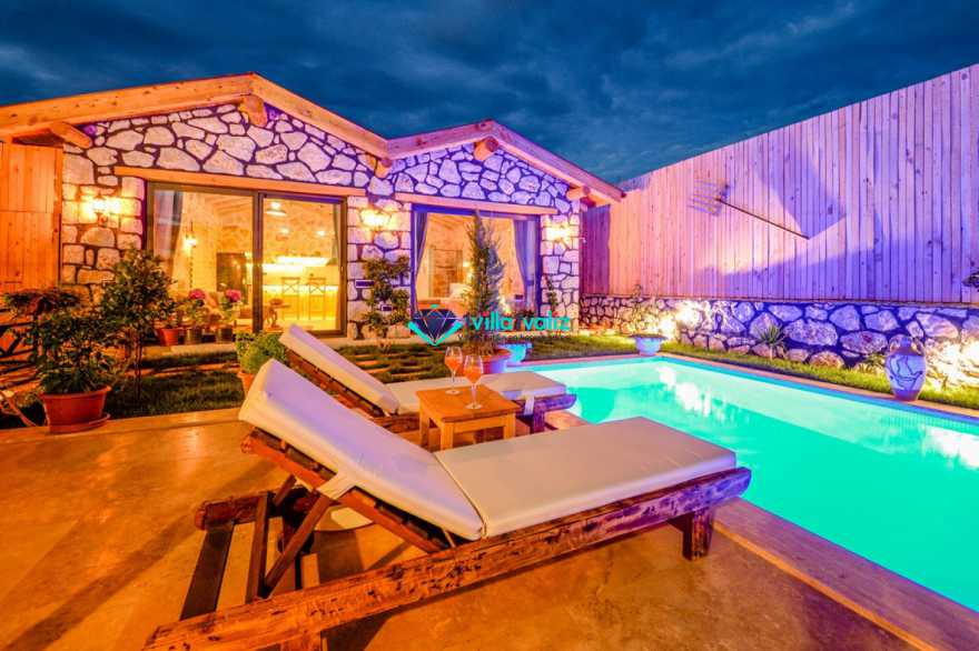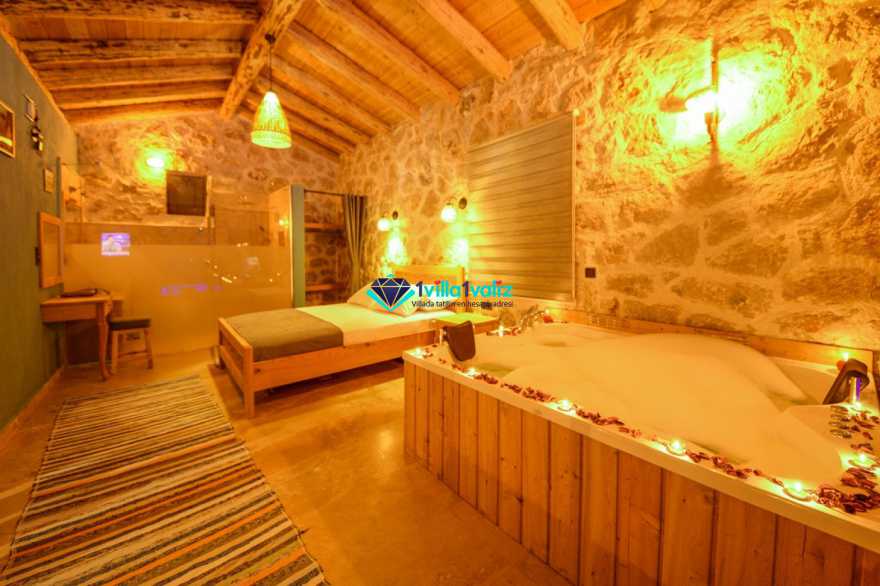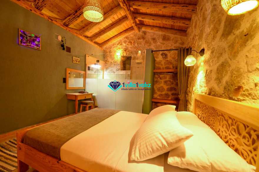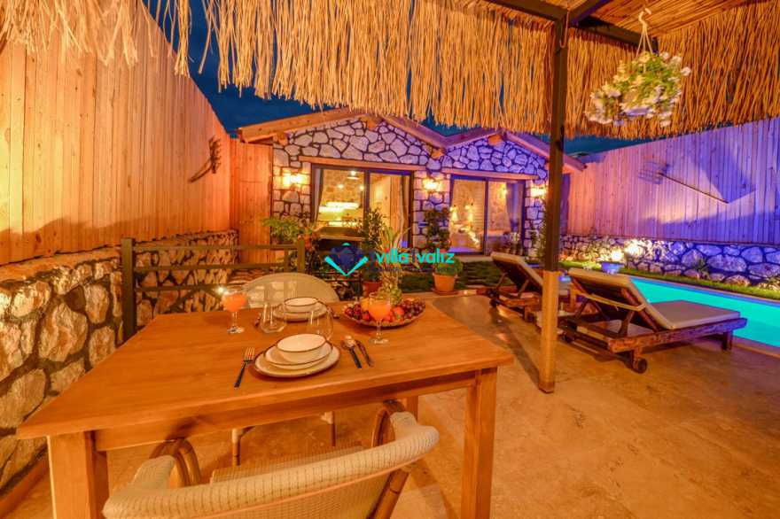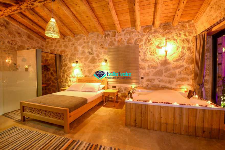 Kalkan'ın Patara mevkiinde doğa ve yeşillik içinde konumlandırılmış balayı çiftlerimiz için özenle tasarlanan kiralık villamız 1 yatak odalıdır, villamız taş ve ahşap yapıya sahiptir. havuz terası korunaklı olup muhafazakar aileler için uygundur, yatak odasında özel ısıtmalı jakuzi yer almaktadır.Lüks ve modern eşyalar ile tasarlanan villamızda misafirlerimizin tüm ihtiyaçlarının karşılana bilmesi için tüm olanaklar düşünülerek tasarlanmıştır