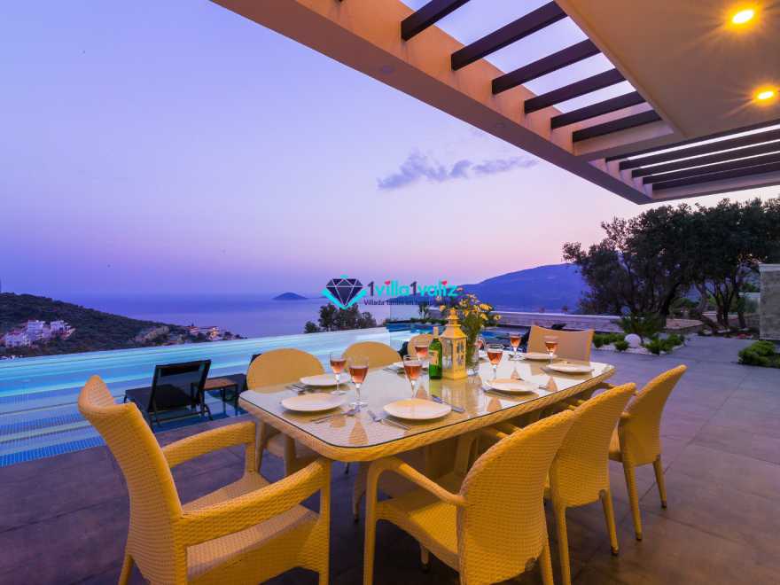 Kalkan Kalamar mevkiinde bulunan Villa Panorama eşsiz deniz ve doğa manzaralı, lüks, konforlu ve modern tasarımıyla misafirlerini beklemektedir. Kalabalık aileler ve arkadaş grupları için oldukça ideal bir yazlık villada kusursuz ve unutulmaz bir tatil geçirmeniz için tüm detaylar en ince ayrıntılarına kadar düşünülmüş ve hizmetinize sunulmuştur.