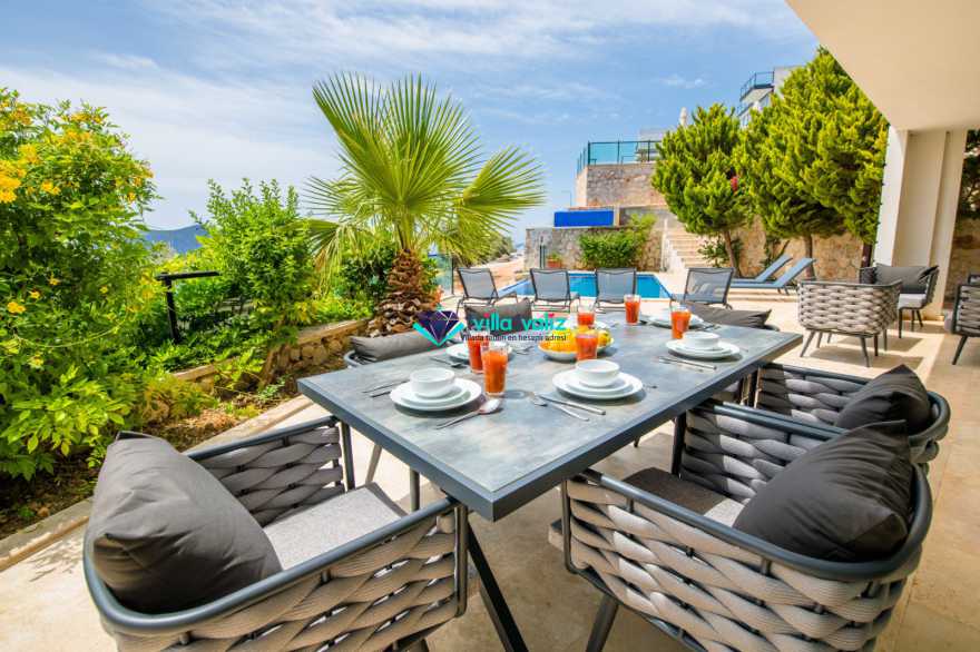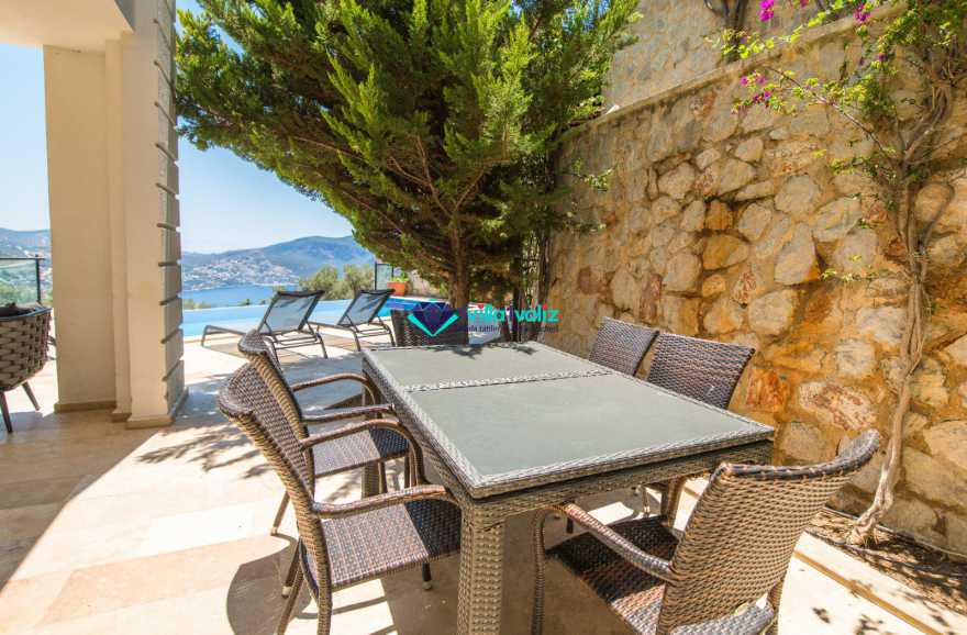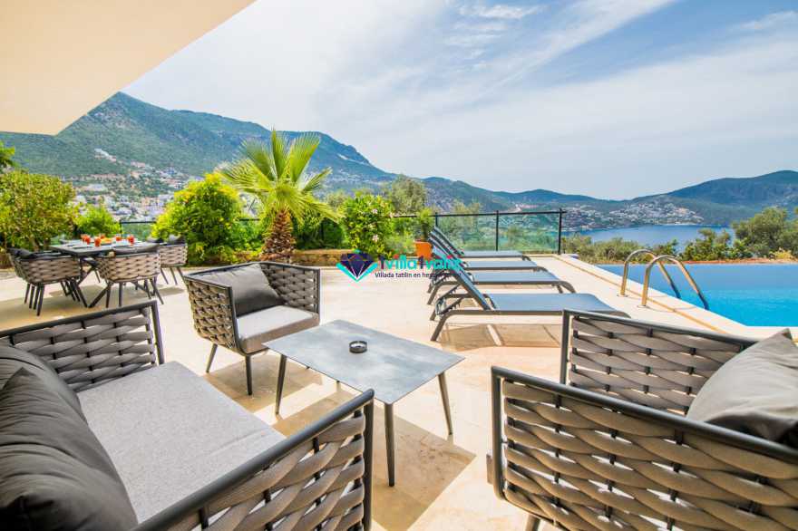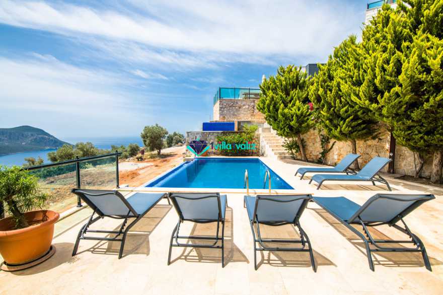 Kaş Kalkan bölgesinde konumlanan villamız 5 yatak odalı 9 kişilik konaklama kapasitesine sahiptir. Genellikle kalabalık aile ve arkadaş grupları tarafından tercih edilen seçeneğimizin oldukça geniş havuz ve havuz terası bulunmaktadır. Müstakil havuzlu villa özenle dizayn edilmiş olup Kalkan manzarası ve deniz manzarasına sahiptir. Kalkan şehir merkezinde sadece 750 m uzaklıkta bulunan villamıza kolaylıkla ulaşım sağlayabilirsiniz.