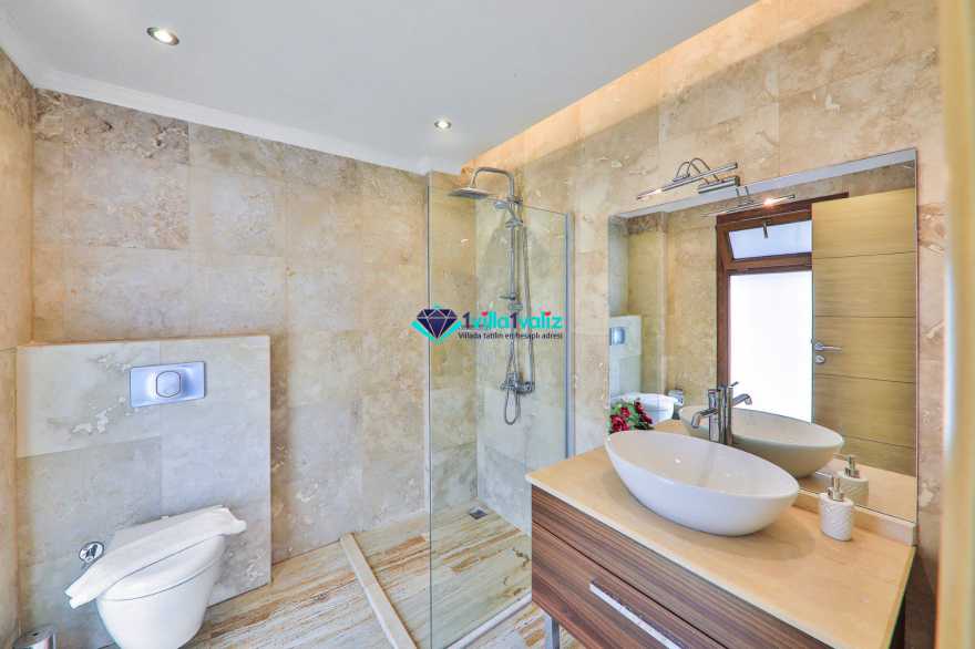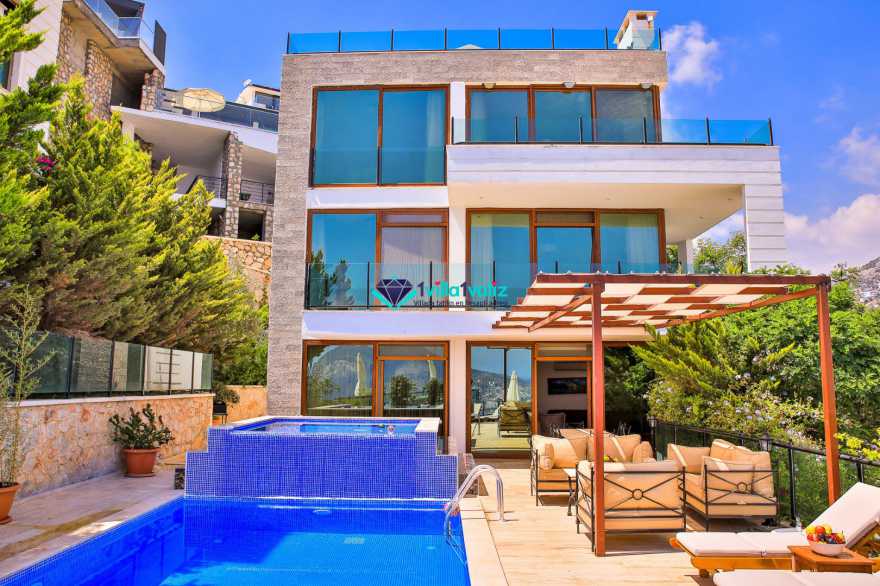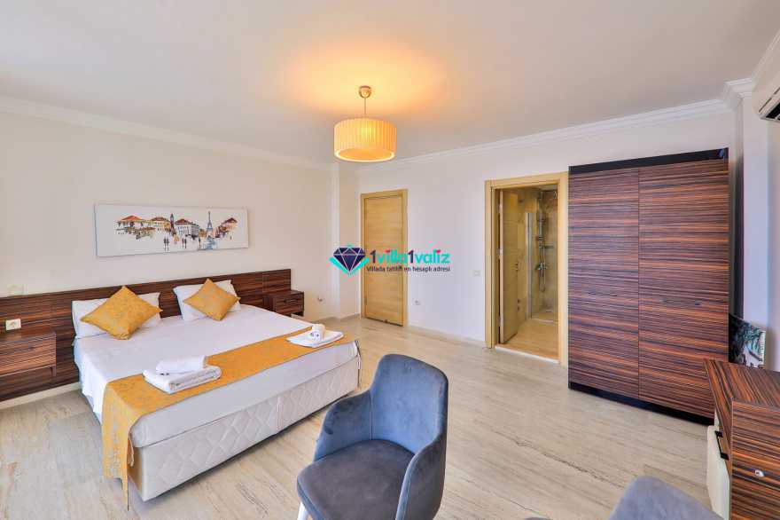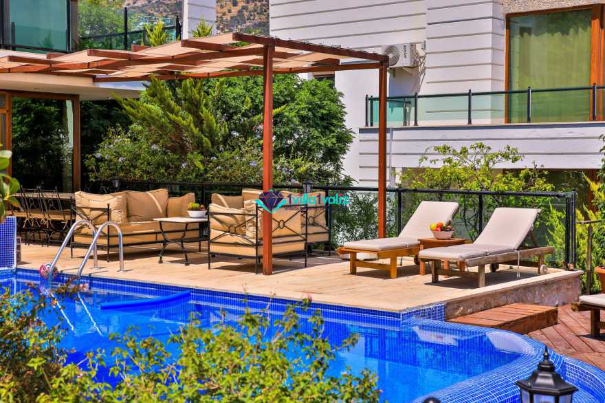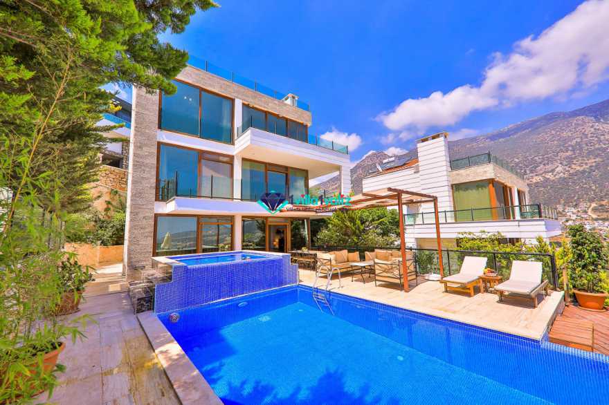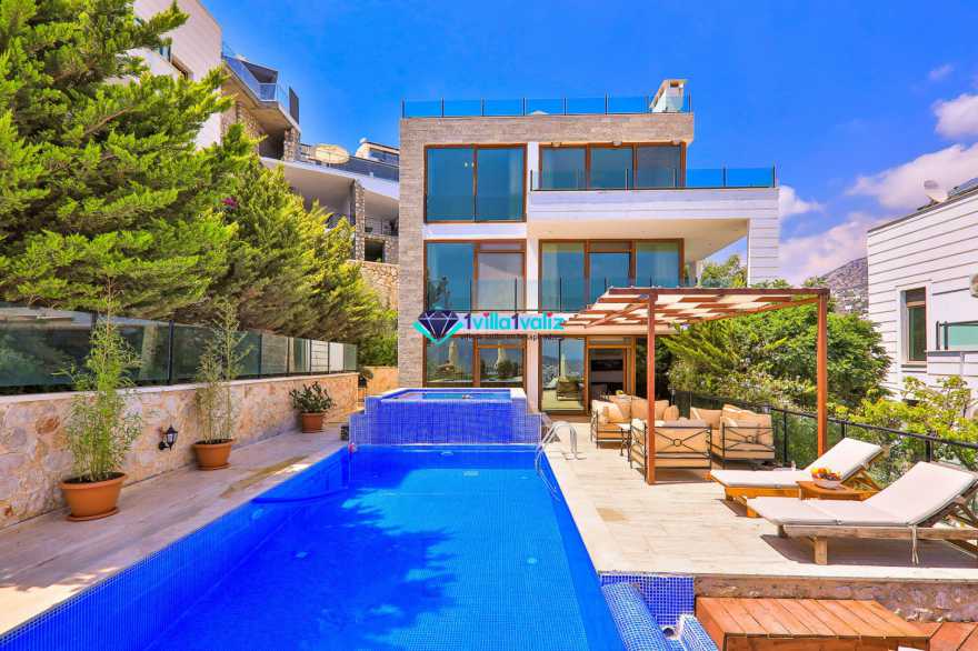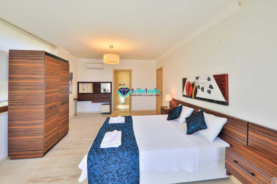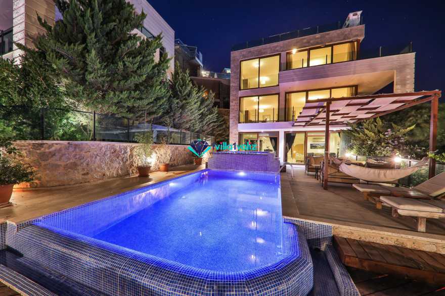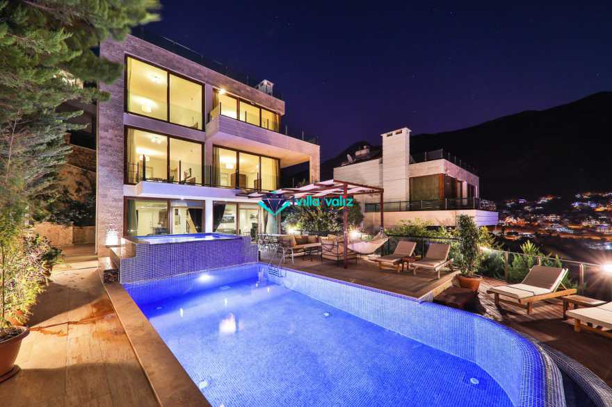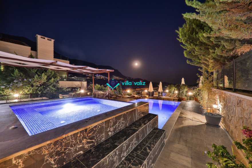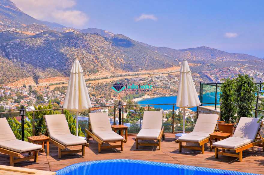 Kaş Kalkan bölgesinde bulunan yazlık kiralık villamız 5 yatak odalı 9 kişilik konaklama kapasitesine sahiptir. Kalabalık aile ve arkadaş grupları tarafında tercih edilen villamız özenle dizayn edilmiştir. Kalkan merkeze sadece 1 km uzaklıkta bulunan Villa Panorama Dou muhteşem deniz manzarasını da sizlere sunmaktadır. Ayrıca oldukça geniş havuz ve havuz terası da olup çocuk havuzu da bulunmaktadır. Bahçe içerisinde çim alanı olup keyifli zamanlar da geçirebileceğiniz oyun alanı ve hamak da bulunmaktadır.