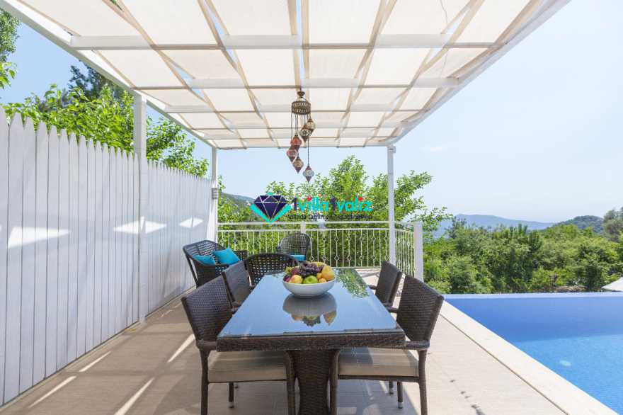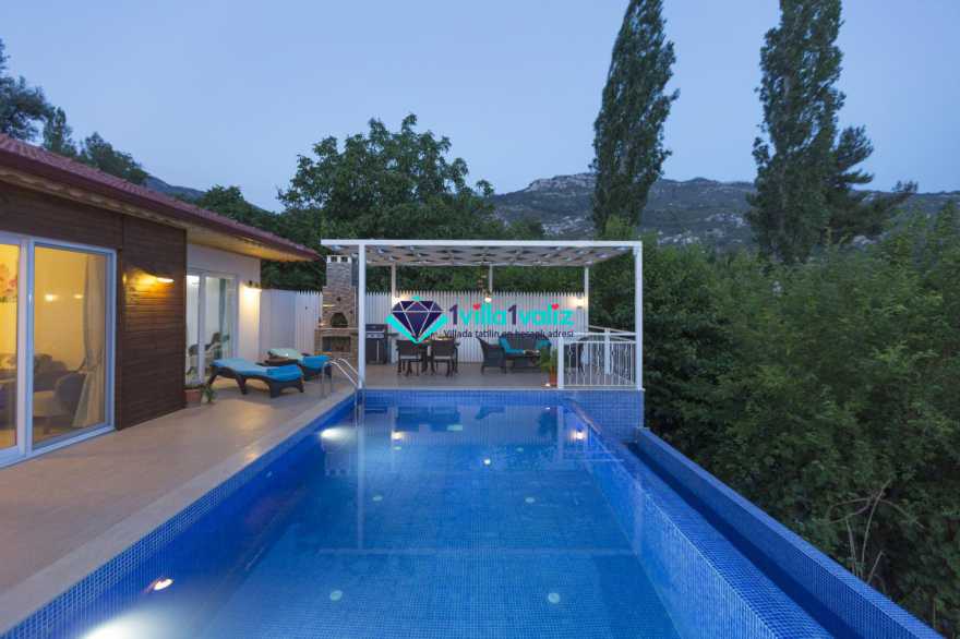 Villa Pınar ahşap tasarımını doğaya uygun bir şekilde yansıtan muhteşem bir villamızdır. Şehrin yorucu ve sıkıcı havasından uzak tamamen doğa ile iç içe muhteşem panoramik deniz manzarasına sahiptir. Korunaklı havuzu ve konumu itibari ile Kalkan İslamlarda bulunan Villa Pınar muhafazakar ailelerimiz için de uygun bir seçenektir. Evliliğiniz en özel anları olan balayı içinde tercih sebebi olabilecek özelliklere sahip olan Villa Pınar siz değerli misafirlerine iyi tatiller diler.
