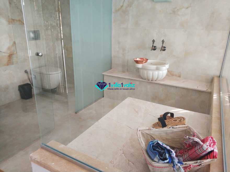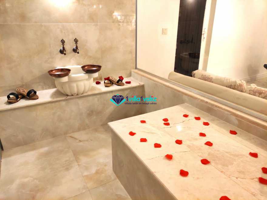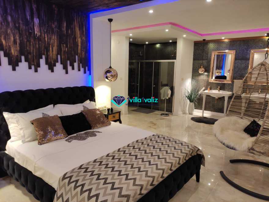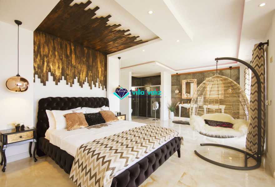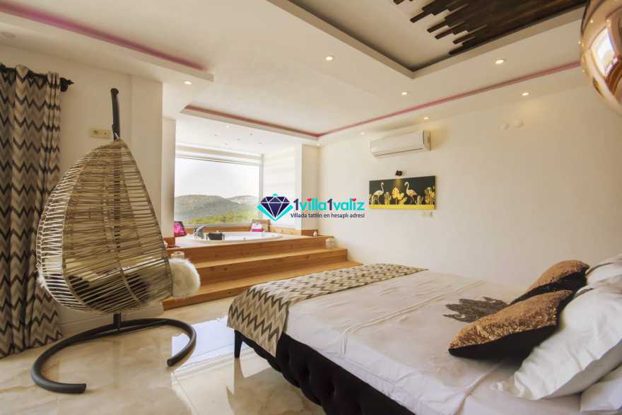 1.Yatak Odası: 1 adet çift kişilik yatak, klima, komodin, elbise dolabı, makyaj masası, salıncak, balkon, banyo ve tuvalet bulunmaktadır.