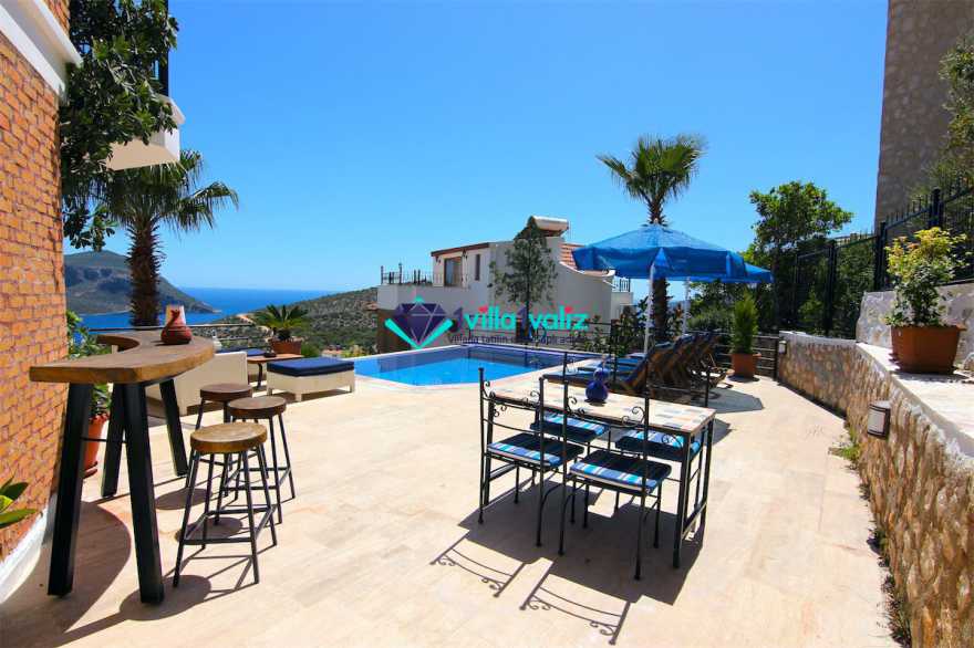 Kalkan Kalamar mevkiinde bulunan Villa Pisces; 3 yatak odası, 6 kişilik konaklama kapasitesine sahiptir. Deniz manzaralı villamız merkeze ve plaja yürüme mesafesindedir. Son derece lüks ve konforlu tasarımıyla dikkat çeken villamızda kusursuz ve unutulmaz bir tatil geçirmeniz için tüm detaylar en ince ayrıntılarına kadar düşünülmüş ve hizmetinize sunulmuştur.