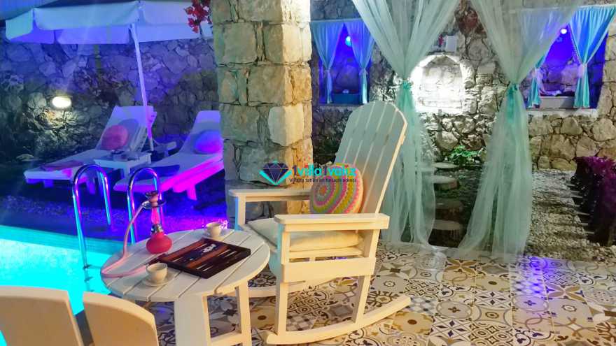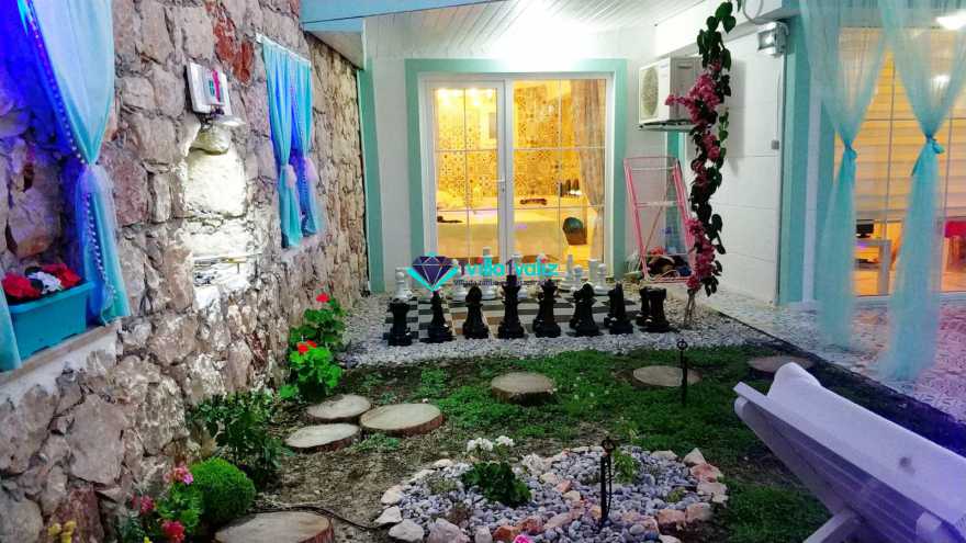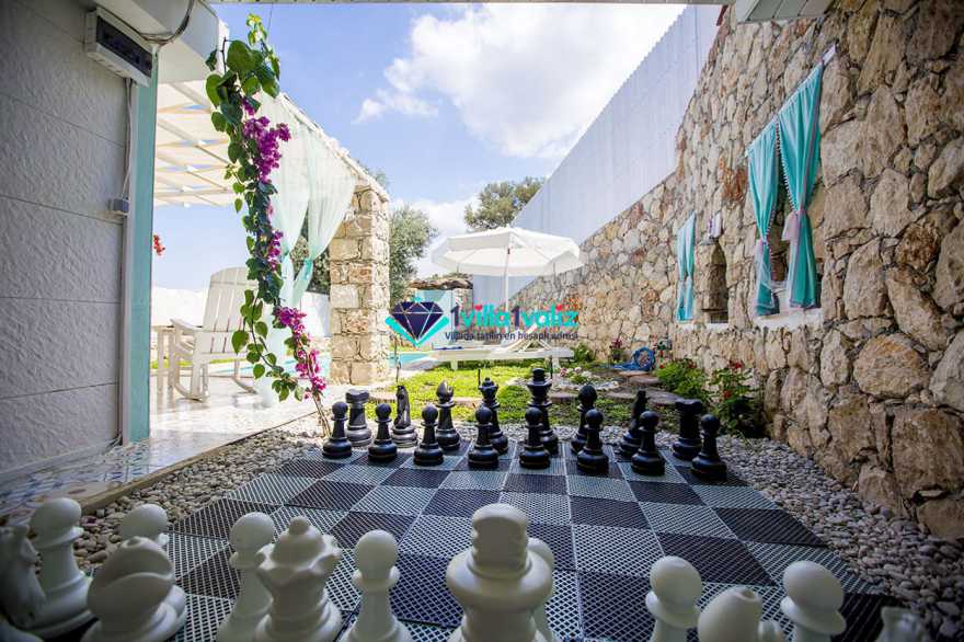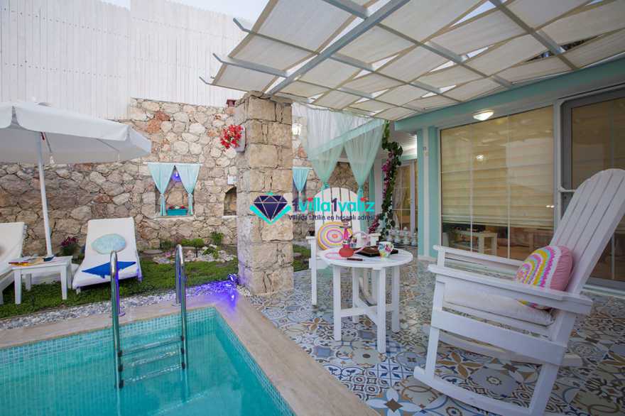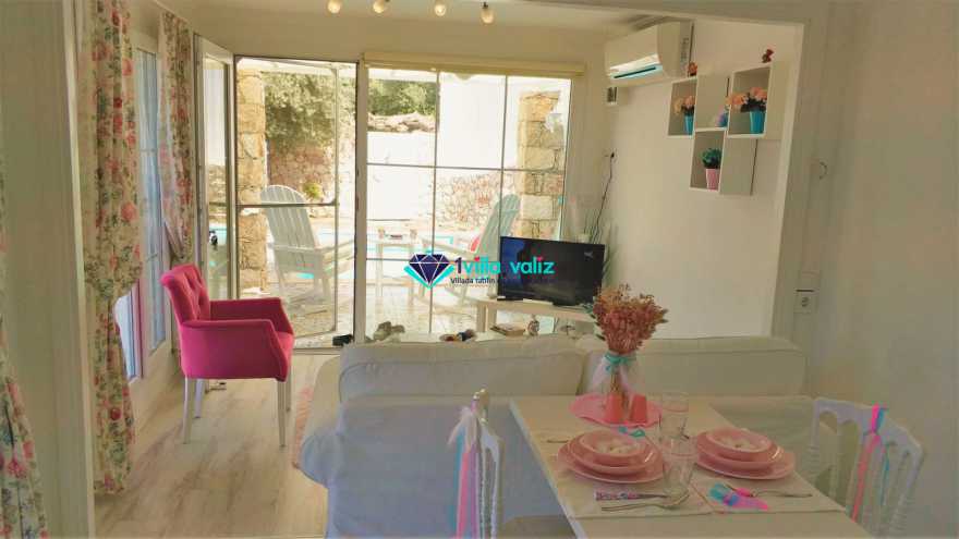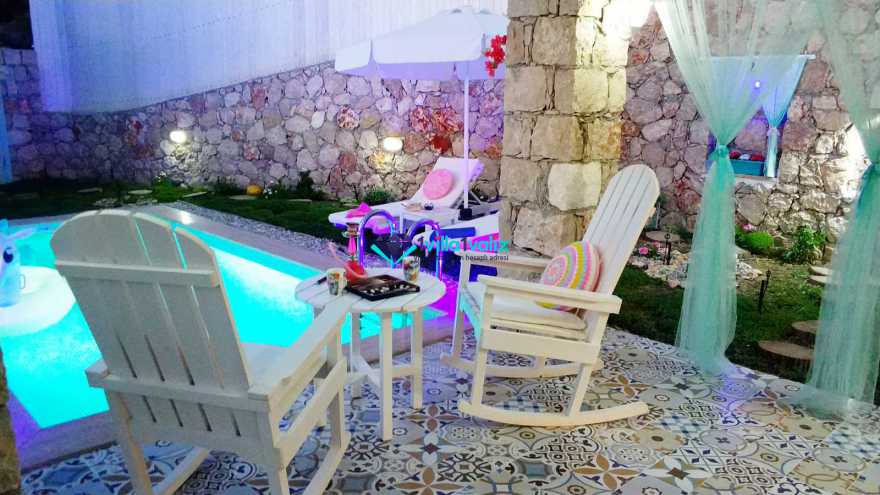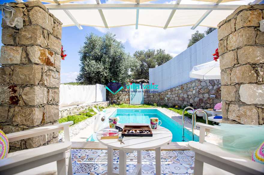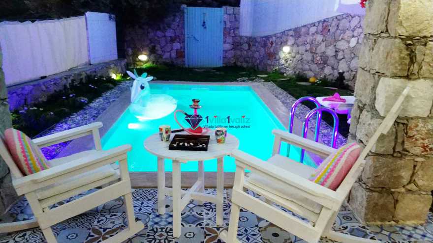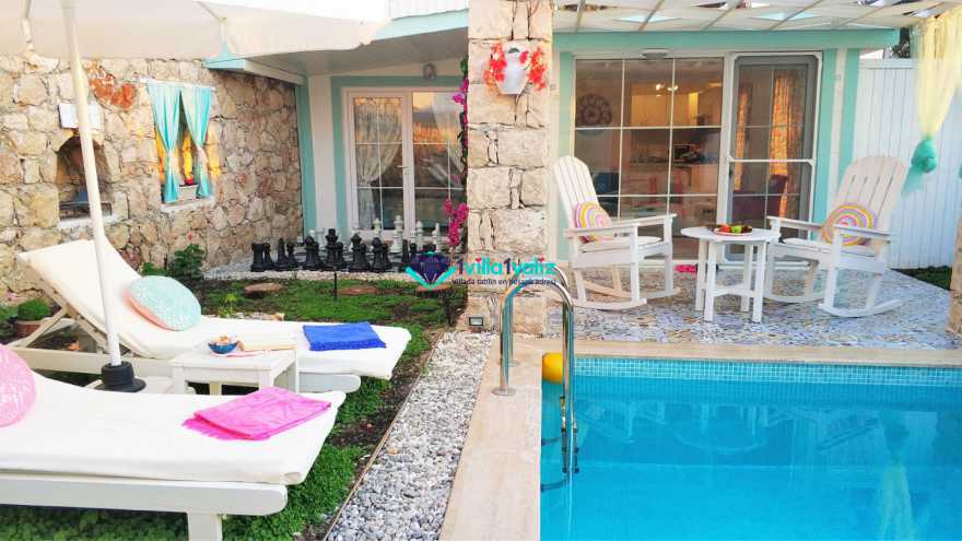 Kiralık Muhafazakar Balayı Villa konseptinin şirin ve tatlı üyesi villa pony 2018 yılı yaz sezonuna hazır. villamız ısıtma havuzlu olup su sıcaklığını koruyayak sezon başı ve sonuda rahat bir havuz keyfi yaşayabileceksiniz. Su yeşili kapısının tepesinde asırlık zeytin ağacı ve renkli çiçekleriyle karşılar sizi Villa Pony. Girdiginiz an, küçük kamkat ağacı ve çiçeklerin birbirine karismis eşsiz mis gibi kokusunu içinize çekersiniz. Yine su yeşili havuzuna sahilde denize giriyormuş hissiyle çakıl taşlarının üzerine basarak girersiniz. Kışında gelmeyi arzu ederseniz sıcacık ısıtılmış havuzuyla sizi kendine çeker Villa Pony. Kiralık Villamızın Bahçesinde Kus sesleri esliginde, ister sallanir sandalyenizde kitap okuyun isterseniz şezlonglarinda bolca güneşlenin. İçinizi bir huzur kaplar bu masal ortamında. Balayi Villamız sevgililer ve her daim sevgili kalanlar icin özel döşenmiş iki kisilik jakuzisiyle mutlulugun resmini artik sizde cizebilirsiniz