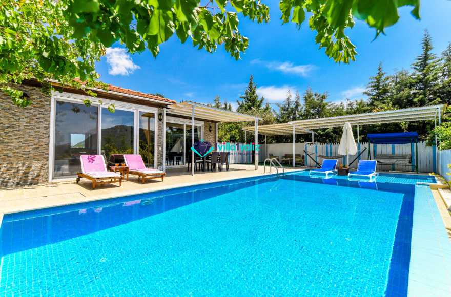 Kalkan Üzümlü köyünde bulunan olağanüstü güzel bir deniz manzarası ve doğa manzarasına sahip villa Sade, Özel korunaklı havuzlu bir villadır. 2 yatak odalı villa 4 kişi kapasitelidir. Muhafazakar aileler ve balayı çiftleri tarafında çok tercih edilmektedir. Doğa içerisinde bulunan villa sakin ve huzurlu bir yerde konumlanmıştır.
