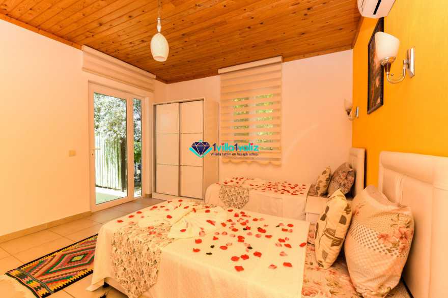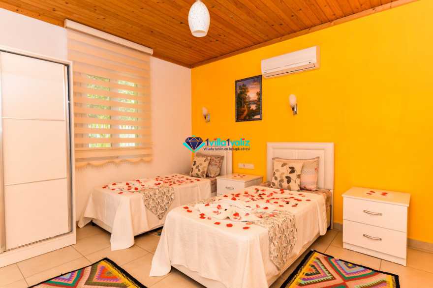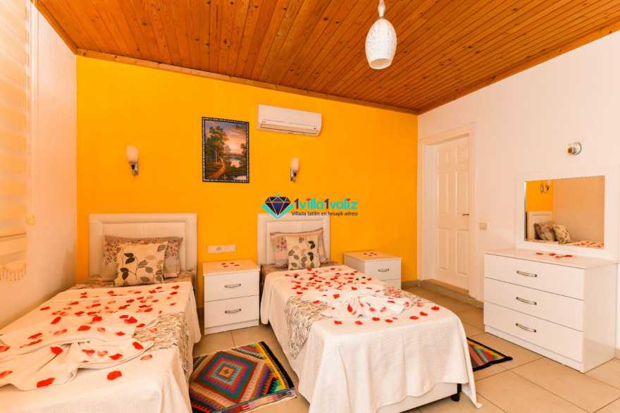 Yatak odası 2 : 2 adet tek kişilik yatak, komodin, klima, makyaj masası, elbise dolabı, banyo ve tuvalet bulunmaktadır.