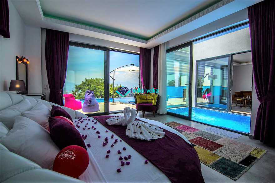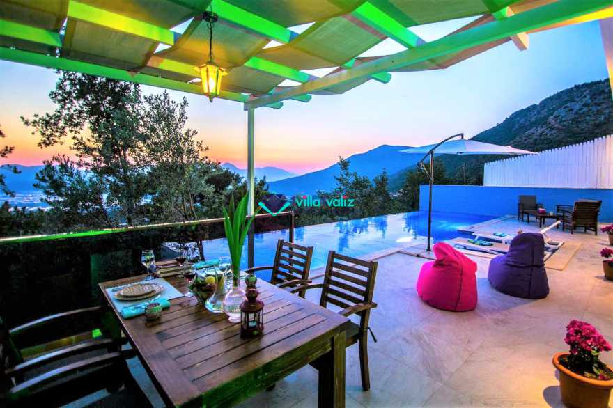 Villa Sanat, Kalkan'ın Üzümlü mevkiinde bulunan villamızdır. Villamız bulunduğu konum itibari ile Kalkan ve Pataranın muhteşem manzarasına sahiptir. Villamız 1 yatak odalı,1 banyolu, 2 kişi kapasiteli ve özel havuzludur. Balayı çiftlerimiz için ideal olan villamızda siz değerli misafirlerimiz için her detay düşünülmüştür.Gözlerden uzak, sessiz sakin ve doğa ile iç içe bir tatil geçirebileceğiniz özel bir villadır.