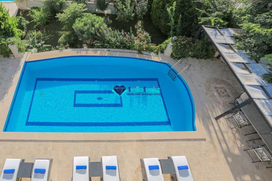Havuz terasında özel yüzme havuzu, şezlonglar, güneş şemsiyeleri, bahçe oturma grubu barbekü, bahçe yemek masası bulunmaktadır.