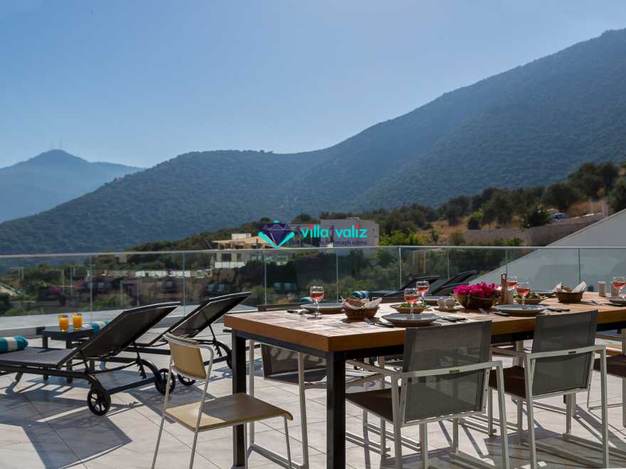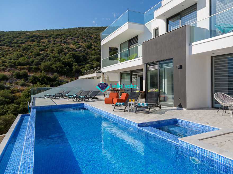 Villa Seascape, 4 yatak odalı,8 kişilik geniş mobilyalı dış mekanı,Jakuzi,barbekü alanı, WIFI, inanılmaz deniz ve dağ manzarası ve büyük bir özel yüzme havuzu ile eşsiz bir tatil için sizleri beklemektedir.Geniş bir arsa üzerinde yer alan Villa Seascape, Akdeniz Dağlarının yanı sıra kalkan'ın eşsiz güzelliğe sahip adalarını görmektedir. Kalkan'ın Kalamar bölgesinde bulunan Villa Seascape Kalamar plaj kulübüne kısa bir yürüyüş mesafesindedir.