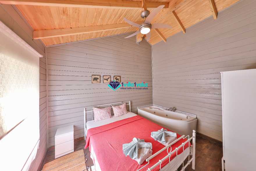 Villa Zümrüt'te eşinizle ve çocuklarınızla rahat bir tatil geçirebilmek için tasarlanmıştır. Diğer artılarının yanında jakuzisi olmasıyla birlikte balayı çiftleri içinde uygun bir seçenektir.