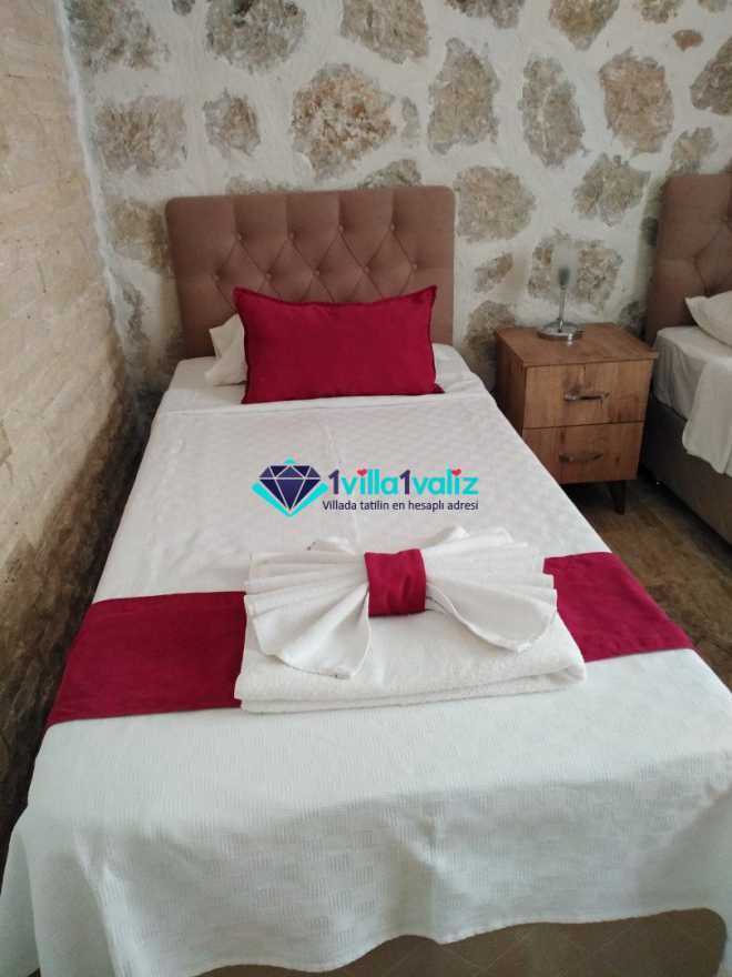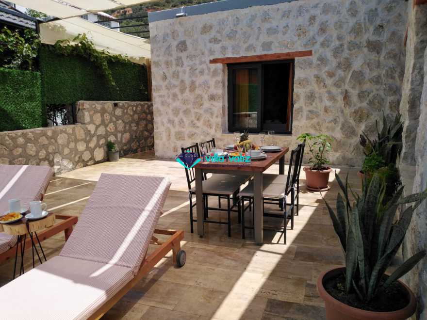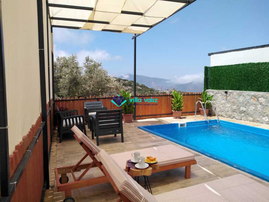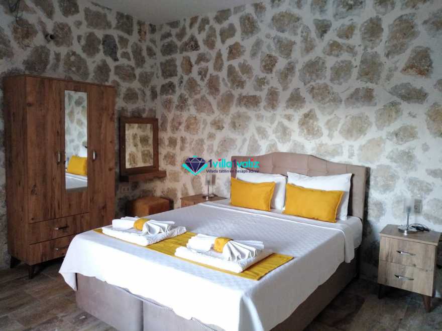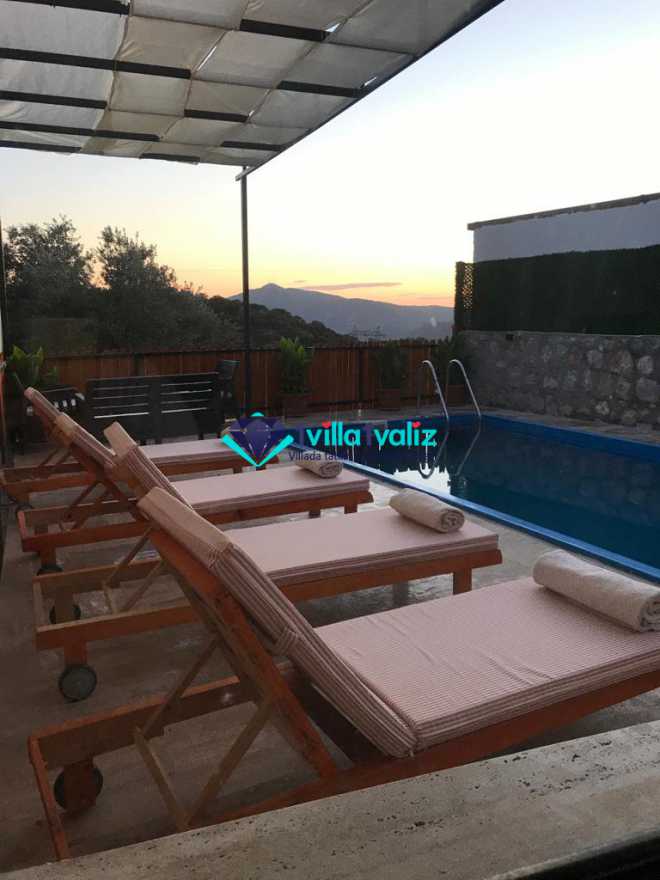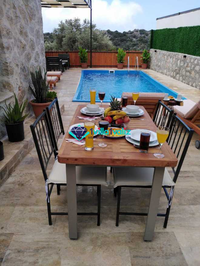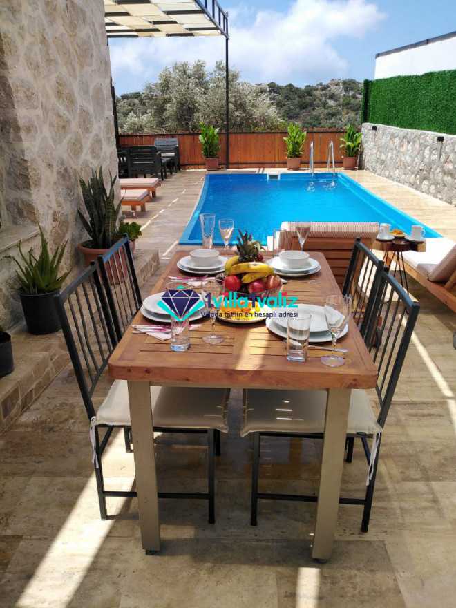 Kalkan/Kördere bölgesinde doğa içinde yer alan 4 kişi kapasiteli villamız isterseniz çekirdek aileniz ile isterseniz arkadaş grubunuz ile konaklmaya uygundur. İçinde 2 yatak odası ve 2 banyo yer alan villamızda jakuzi de yer almaktadır. Dış yüzme alanı korunaklı olup dışarıdan görünmemektedir.
