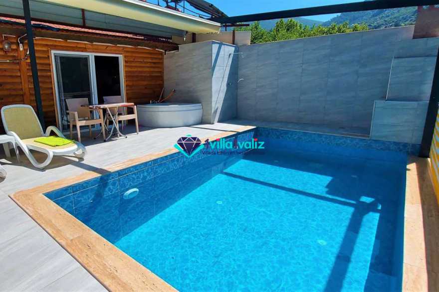Bahçesinde rahatça güneşlenebileceğiniz, şezlonglara sahip olan Villa Seray'ın yüzme havuzu dışarıdan asla görünmeyecek şekilde tasarlanmıştır ayrıca havuz başında bahçe jakuzisi bulunmaktadır. Gözlerden uzak şekilde tatil yapabileceğiniz Villa Seray, muhafazakar tatilciler için de uygun.
