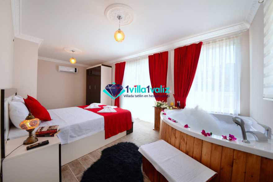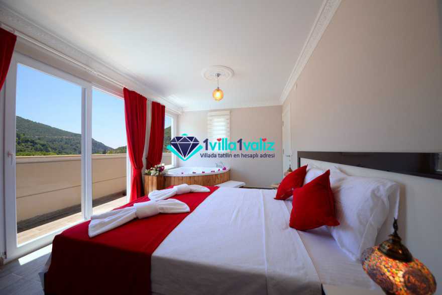 Villamız Kalkan-Sarıbelen mevkiinde doğa ile iç içe şekilde konumlanmıştır. Villamız 4 kişilik misafir kapasitesine sahip olup, 2 yatak odası bulunmaktadır. Balayı çiftlerimizin de tercihinde olan villamızda her detayı sizin için düşünülerek hazırlanmış alanları ve özel havuzu bulunmaktadır. Suit odamızda bulunan jakuzi ile yılın yorgunluğunu atmanın tam zamanı