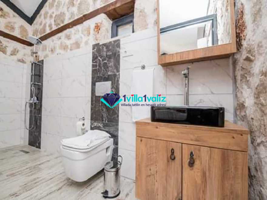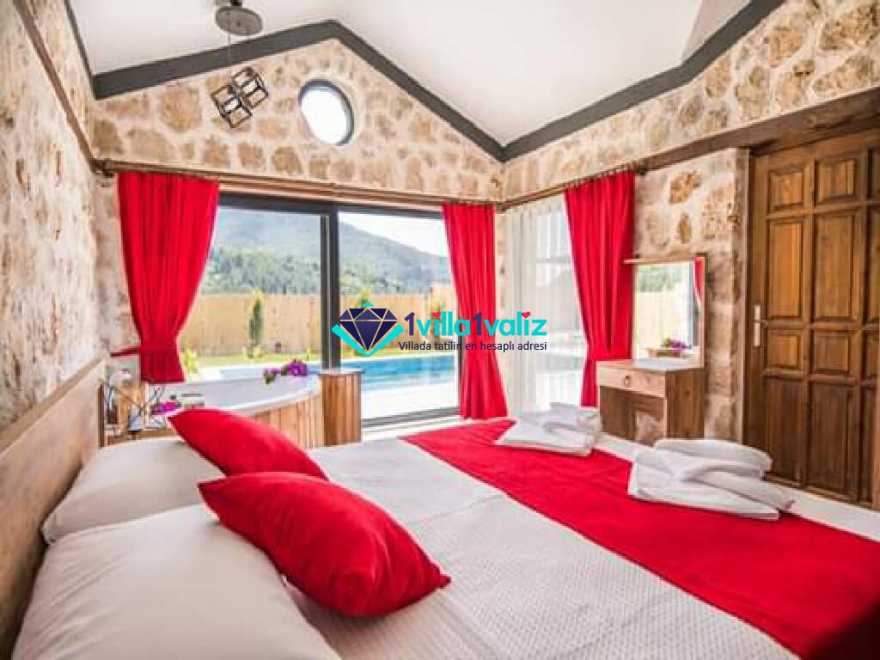 Villamız 1 ensüit yatak odalı olup 2 kişi konaklama kapasitelidir. Yatak odasında 1 çift kişilik yatak ve jakuzi bulunmaktadır.