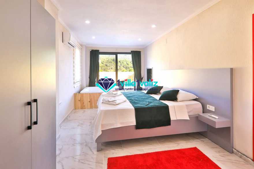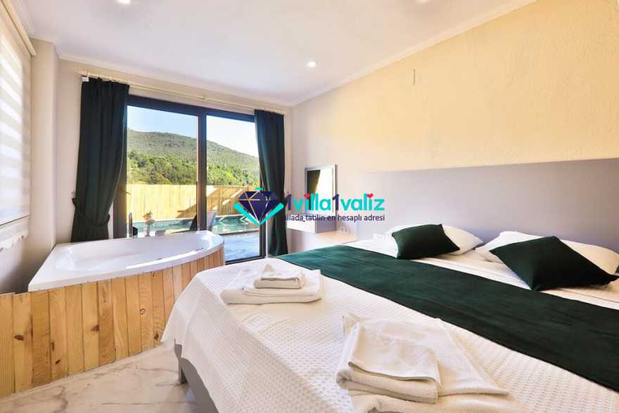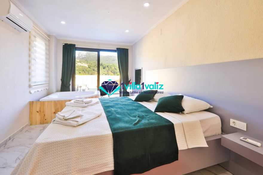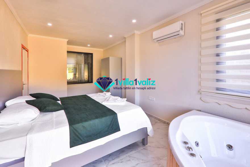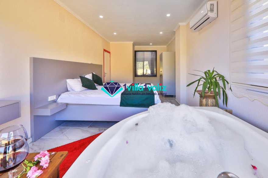 Villamız, 1 ensüit yatak odalı olup 2 kişi konaklama kapasitelidir. Yatak odasında 1 çift kişilik yatak ve jakuzi bulunmaktadır.