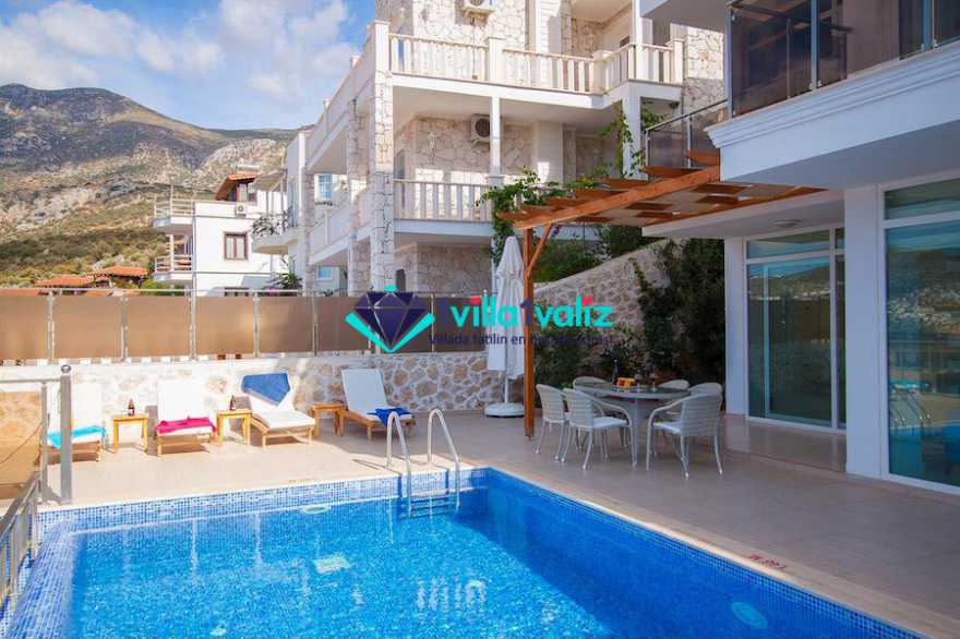 Türkiye’nin en iyi turizm bölgelerinden biri olan Antalya’nın Kalkan Bölgesi Kışla mevkiinde bulunmaktadır. Kalkan’ın eşsiz doğa ve deniz manzarasına sahip villamız, misafirlerine eşsiz bir tatil keyfi yaşatacaktır. Villa Sezen kalabalık aileler için ideal bir villadır. Villamız toplam 4 adet yatak odasına sahip olup, bir odasında TV bulunmaktadır. Banyoların 1 tanesinde küvet, diğer banyolarda ise duş bulunmaktadır. Villamızda akşamları sevdiklerinizle birlikte Kalkan’ın muhteşem deniz manzarası karşısında unutulmaz anlar yaşayabilirsiniz. Villa içerisinde gerekli olan tüm ev araç ve gereç mevcut olup internet bağlantısı vardır.