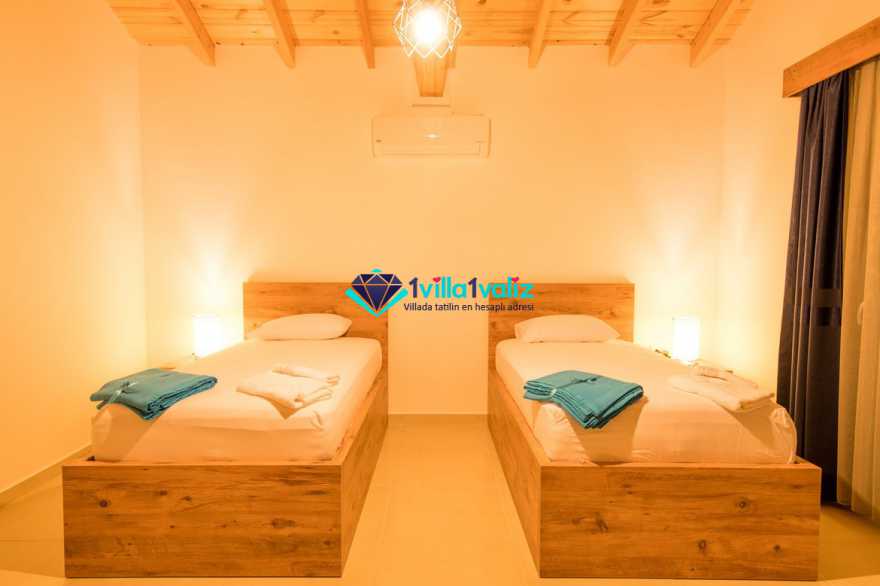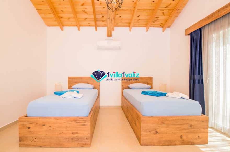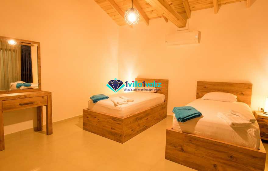 2. Yatak Odası : 2 adet tek kişilik yatak, elbise dolabı, makyaj masası, komodin, banyo ve lavabo bulunmaktadır.