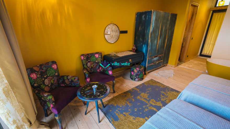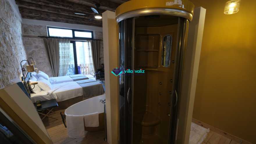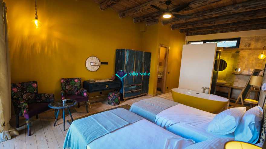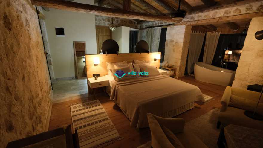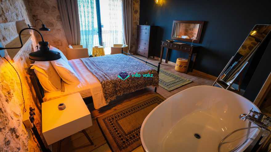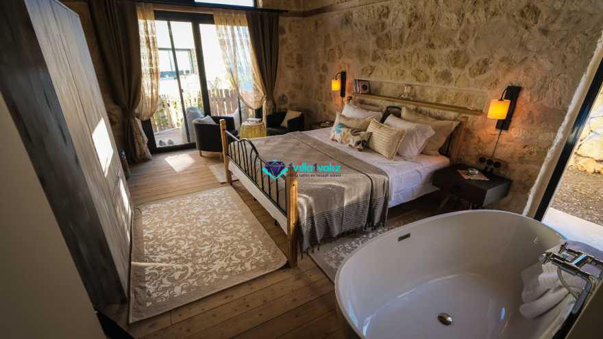 Yatak Odası 5: 1 adet çift kişilik yatak, pervane, komodin, elbise dolabı, makyaj masası, küvet, banyo ve tuvalet bulunmaktadır.