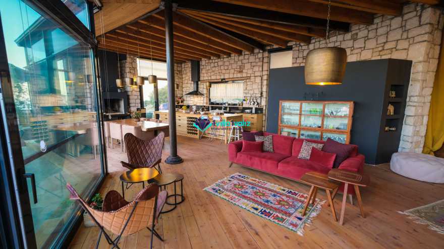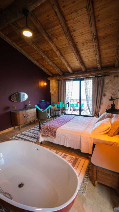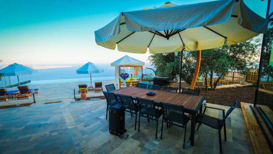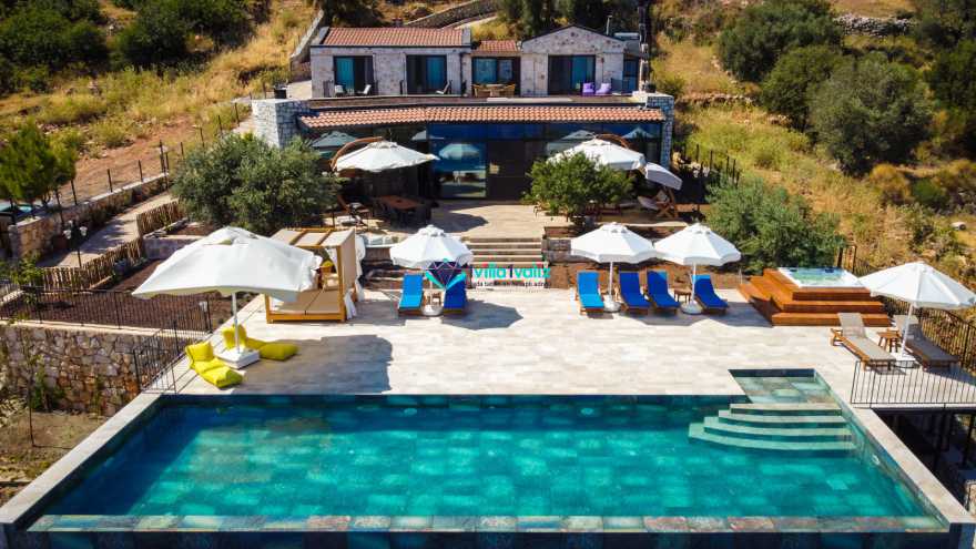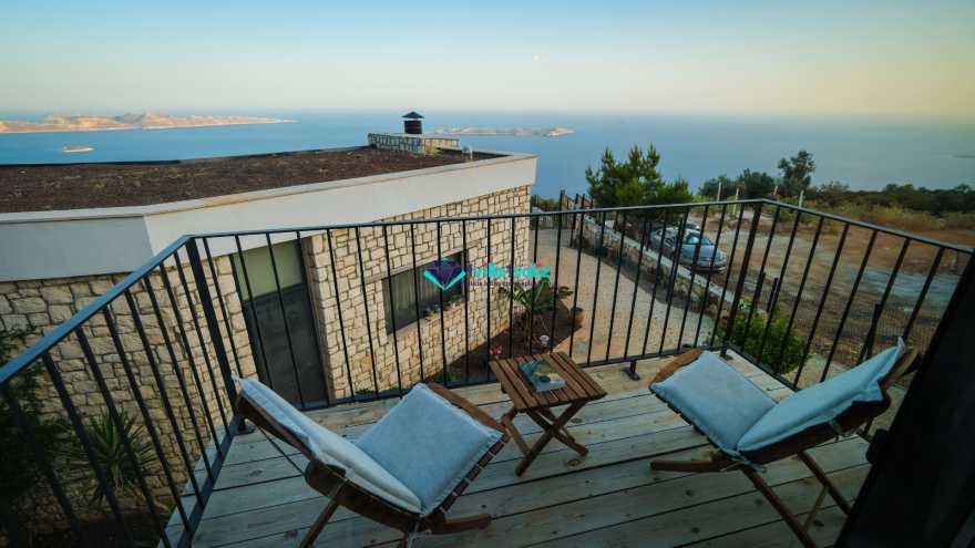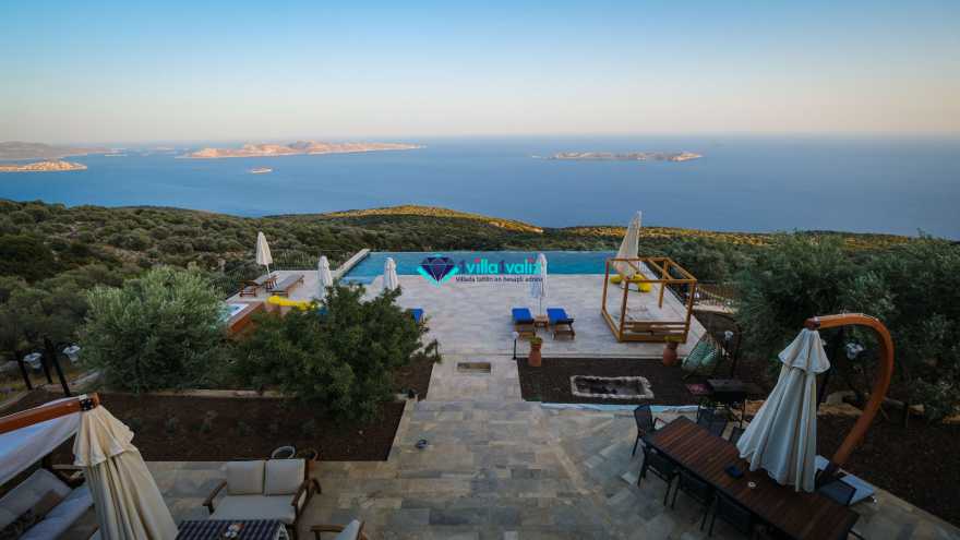 Villamız mimar evi olup kendisi için özel olarak tasarlamıştır. Eşsiz deniz manzaralı villada misafirlerimizin manzaranın keyfini çıkarabilmesi için sonsuzluk havuzu bulunmaktadır ayrıca zeytin ağaçları bulunan 6 dönüm arazide dolaşma imkanı sunar.