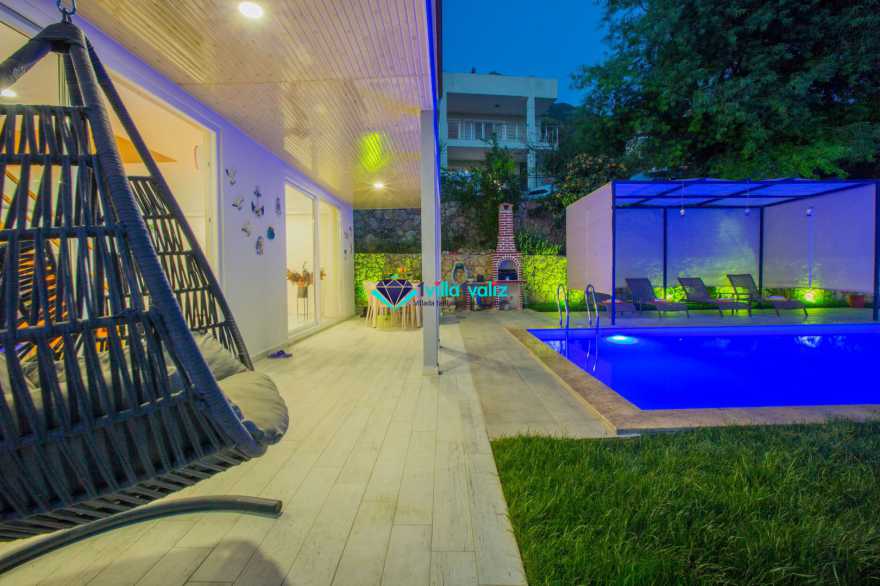Villa Smyrna Kalkan Akbel mevkiinde konumlanmıştır; doğa ve deniz manzarasına sahip muhafazakar villamızdır. Çekirdek aileler ve balayı çiftlerimizin tercihi arasında olan bir villadır. Kiralık tatil villamız market, restoranlara yürüme mesafesi ile 10 dakikadır. Özel yüzme havuzu ve havuz terasında harika zamanlar geçirebileceğiniz gönlünüzce eğlenip güneşlenebileceğiniz bir ortama sahiptir. Kiralık tatil villamızın etrafının korunaklı olması dolayısıyla havuz ve havuz terası dışarıdan gözükmemektedir.