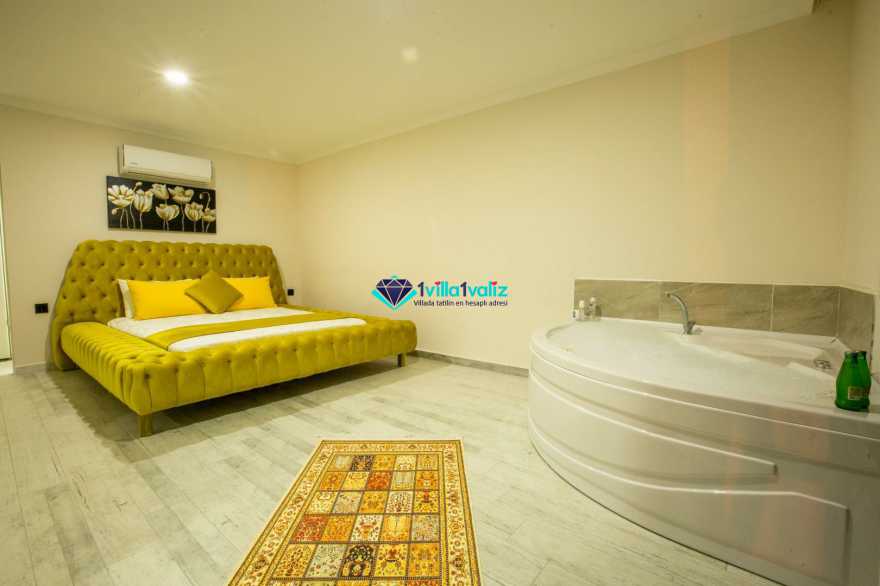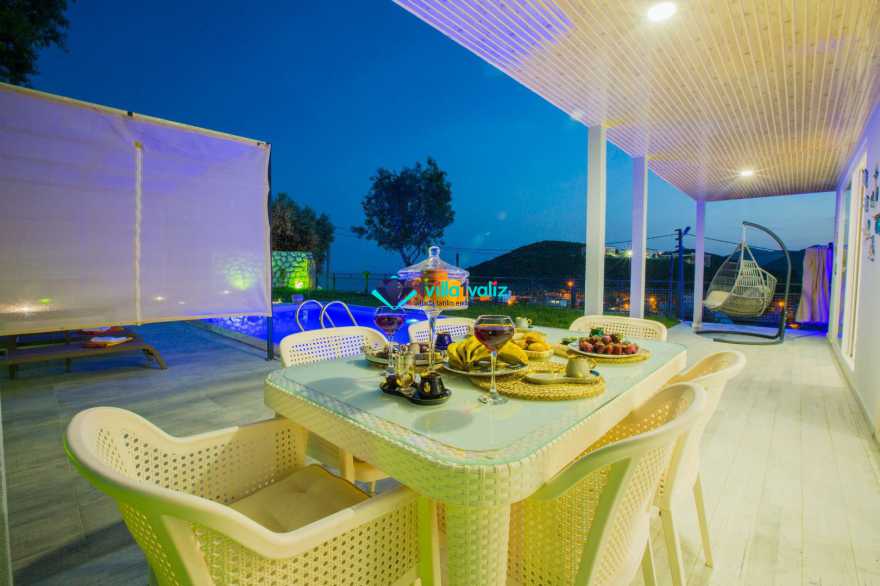 Fotoğraflar da görüldüğü gibi korunaklı kiralık villamız sade ve şık bir mimariye sahiptir. İçerisinde kaliteli eşyalar kullanılmış olup, siz değerli misafirlerimizin rahatlığı için her şey ince ayrıntısına kadar düşünülmüştür.