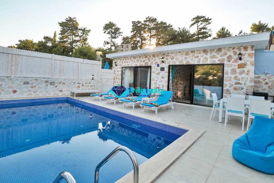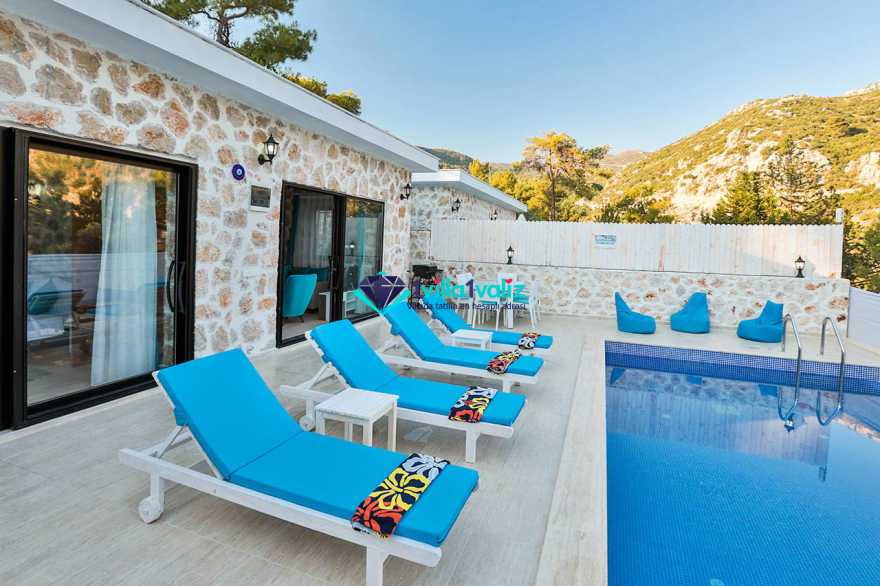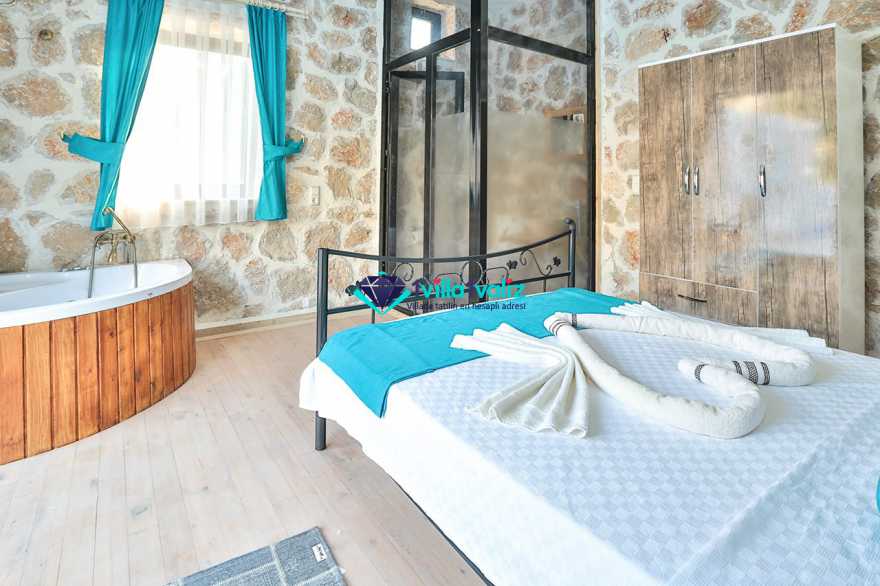 Kalkan İslamlar Köyünde bulunan Villamız balayı çiftleri için özel tasarlanmıştır. 2 yatak odalı villamızın çift kişilik süit oda içerisinde muhteşem jakuzi sizi beklemektedir.