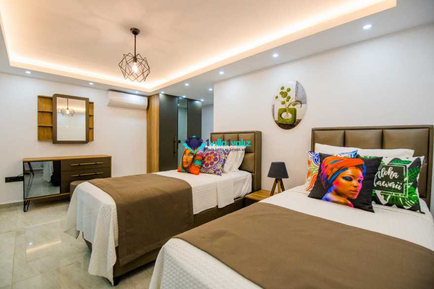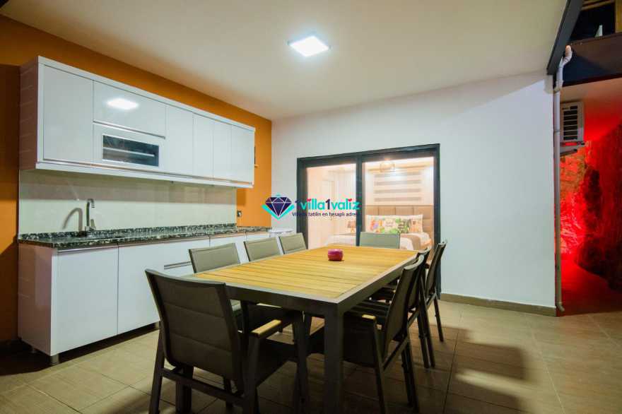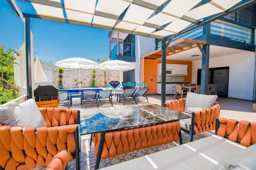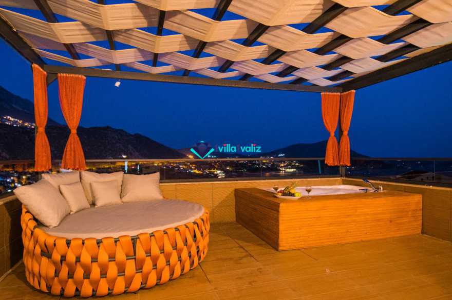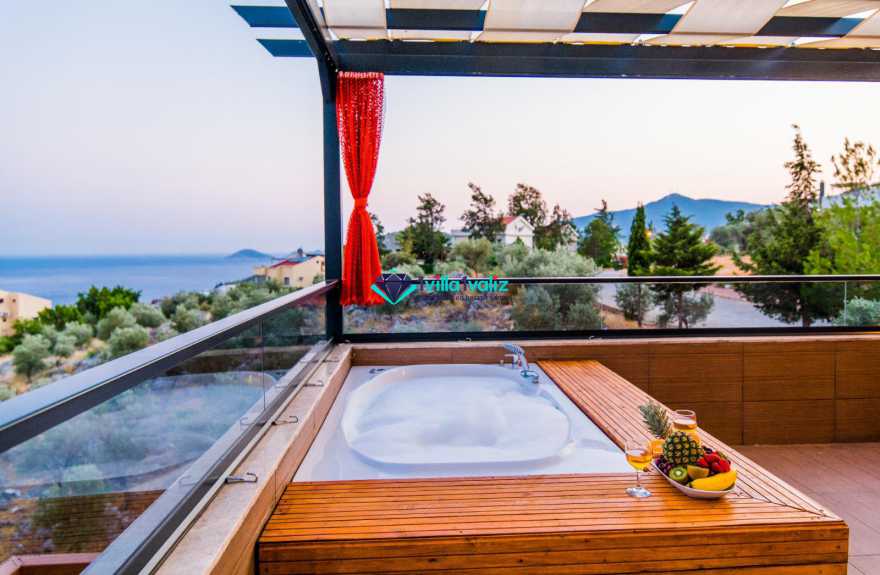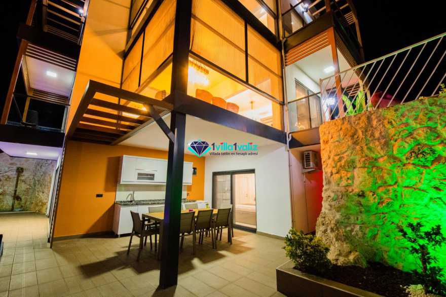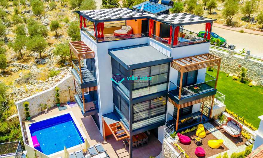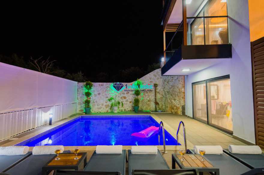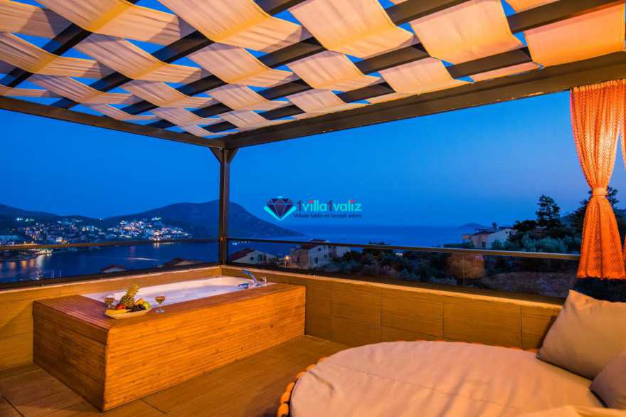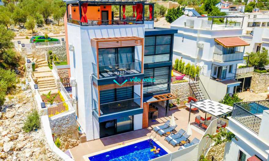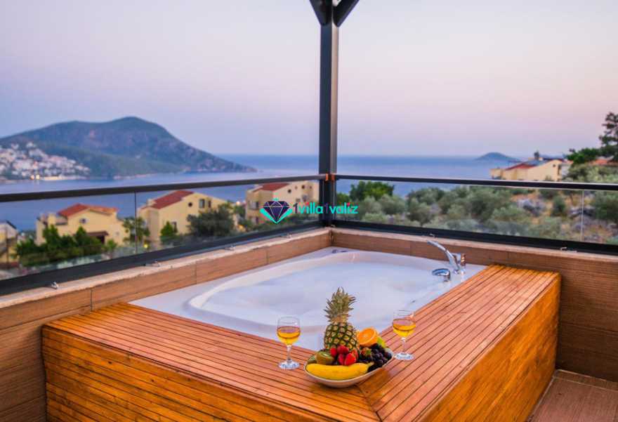 Villa Su, Kalkan Ortaalan da merkezi bir lokasyona sahip 2020 yılında kiralamaya açılmış lüks kiralık villa seçeneğimizdir. Şık ve konforlu dizaynı ile misafirlerimiz için tüm detaylar düşünelerek tasarlanmış villa su size özel ayrıcaklı bir tatil fırsatı sunmaktadır. Kalabalık aile ve arakdaş gurupları için oldukça ideal bir seçim olacaktır. Dört yatak odası, dört banyodan oluşan kiralık villamız açık mutfak salon ve havuz terasında da mutfak bulunmaktadır. Villamızın toplam konaklama kapasitesi 8 kişi dir. Tatiliniz süresince hoş vakit geçirebileceğiniz geniş bahçe alanı, bahçe mobilyaları ve salıncak yer almaktadır. Üst teras katında deniz manzarasına karşı jakuzi, dinlenme yatağı oturma takımı ve sinevizyon sistemi bulunmaktadır. Manzara eşliğin keyifli bir tatil sizleri bekliyor.