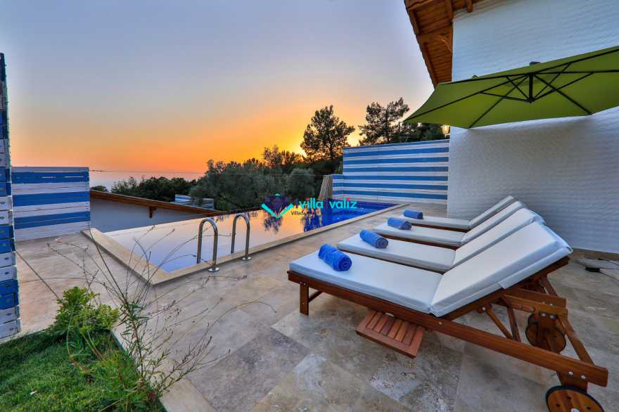 Villa Sunset Duo, Kalkan’ın en güzel köylerinden birisi olan İslamlar Köyü’nde bulunmaktadır. Yemyeşil ağaçların arasında,doğa içerinde muhteşem doğa manzarasıyla öne çıkan villa, misafirlerine doğanın tadını çıkarabilme imkanı sunmaktadır. Villa Sunset Duo, tek katlı ve ahşap yapıdadır. Villamız, 2 oda,4 kişi kapasiteli, balayı çiftleri ve 4 kişilik aileler için ideal olup, korunaklı havuzlu muhafazakar konseptte bir villadır. Misafirlerinin her türlü konforunun düşünülüp hayat geçirildiği villamızda, villa konuklarını doğal yaşam içerisinde rüya gibi bir villa tatili bekliyor. Villa Sunset Duo Kalkan merkeze 8 km. mesafededir.