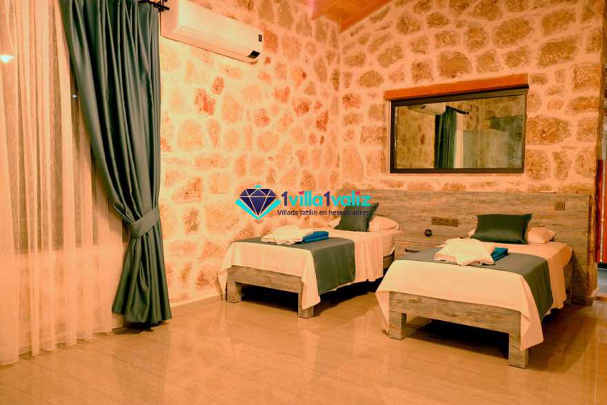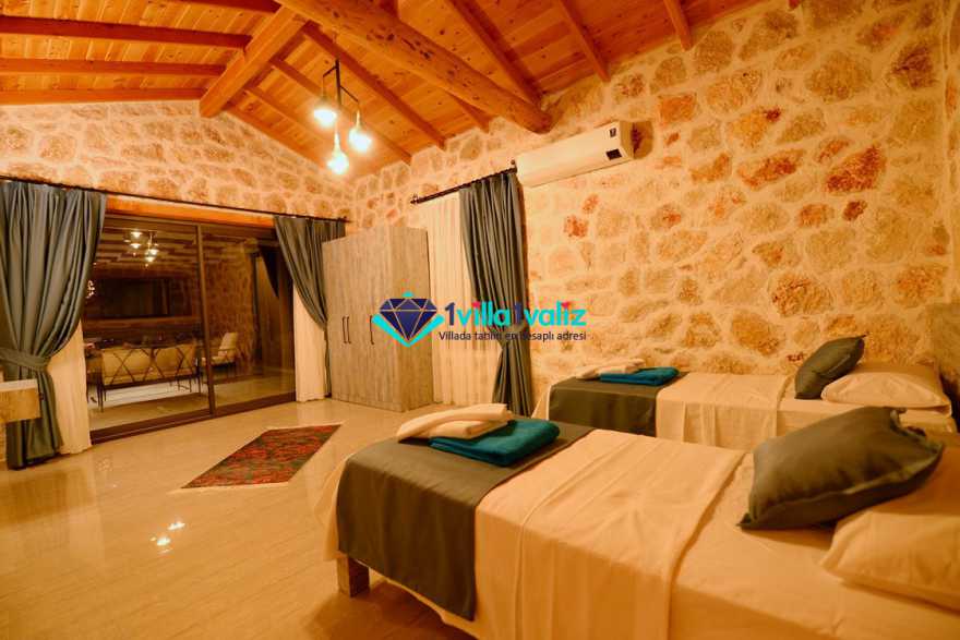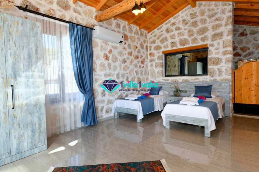 2.Yatak Odası: 2 adet tek kişilik yatak, klima, elbise dolabı, komodin, makyaj masası, banyo, tuvalet ve havuz terasına çıkış bulunmaktadır.
