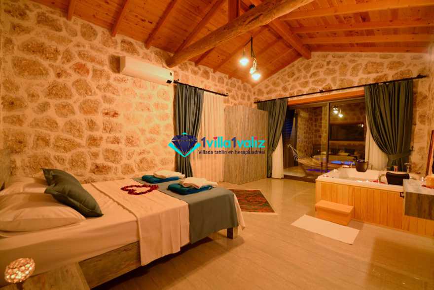 1.Yatak Odası (Aile): 1 adet çift kişilik yatak, klima, elbise dolabı, komodin, makyaj masası, jakuzi, banyo ve tuvalet bulunmaktadır.