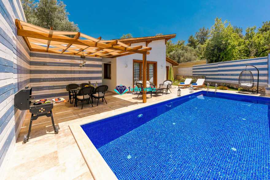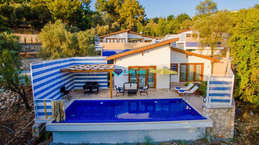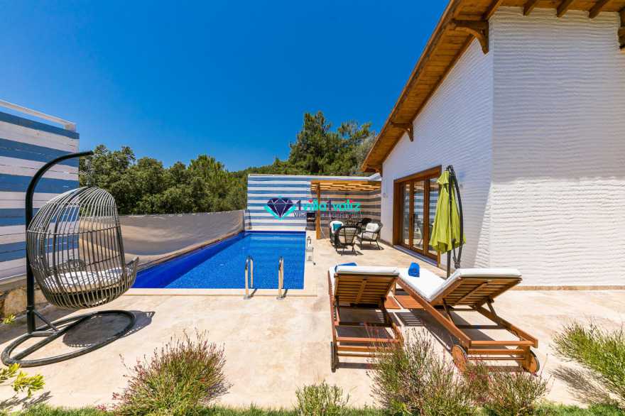 Villa Sunset Tre, Kalkan’ın en güzel köylerinden birisi olan İslamlar Köyü’nde bulunmaktadır. Yemyeşil ağaçların arasında,doğa içerinde muhteşem doğa manzarasıyla öne çıkan villa, misafirlerine doğanın tadını çıkarabilme imkanı sunmaktadır. Villa Sunset Tre, 2019 yılı yapımı, tek katlı ve ahşap yapıdadır. Villamız, tek oda,2 kişi kapasiteli, balayı çiftleri için ideal olup, korunaklı havuzlu muhafazakar konseptte bir villadır. Misafirlerinin her türlü konforunun düşünülüp hayat geçirildiği villamızda, villa konuklarını doğal yaşam içerisinde rüya gibi bir villa tatili bekliyor. Villa Sunset Tre Kalkan merkeze 8 km. mesafededir.