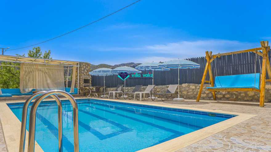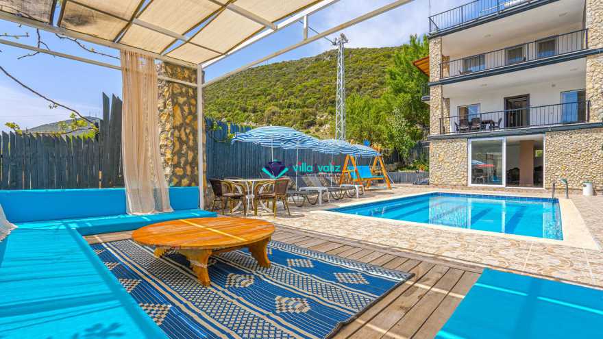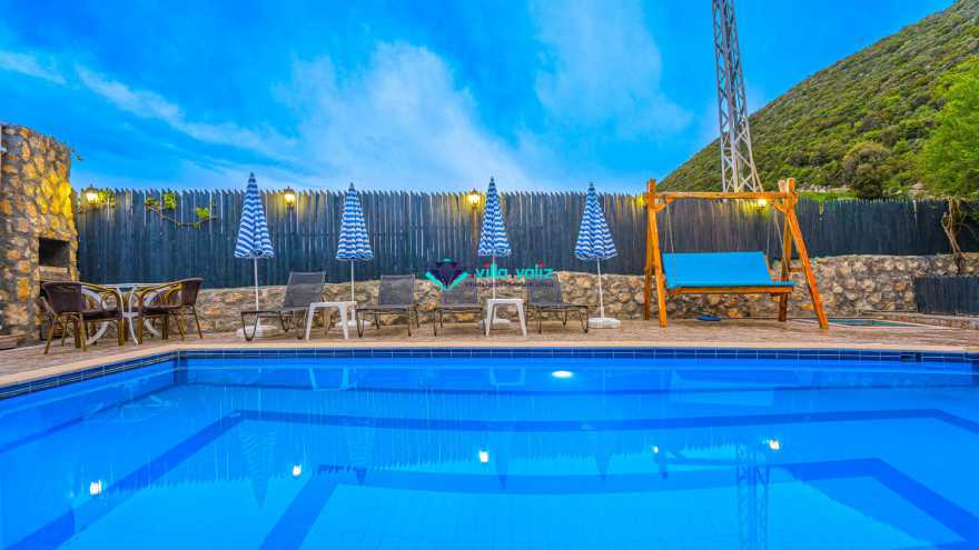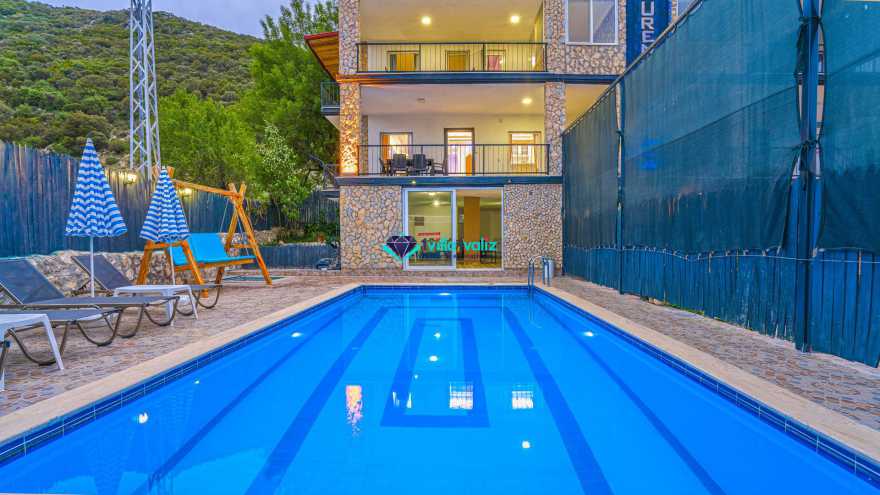 Kalkan Sarıbelen mevkiinde bulunan Villa Süren Eco 1; 3 yatak odası, 5 kişilik konaklama kapasitesine sahiptir. Doğa ile iç içe olan villamız sizlere sessizlik içinde ve sadece doğayı dinleyebileceğiniz şehir hayatını tamamen unutturacak bir tatil olanağı sağlıyor. Villamızda minik misafirlerimiz için çocuk havuzu bulunmaktadır.
