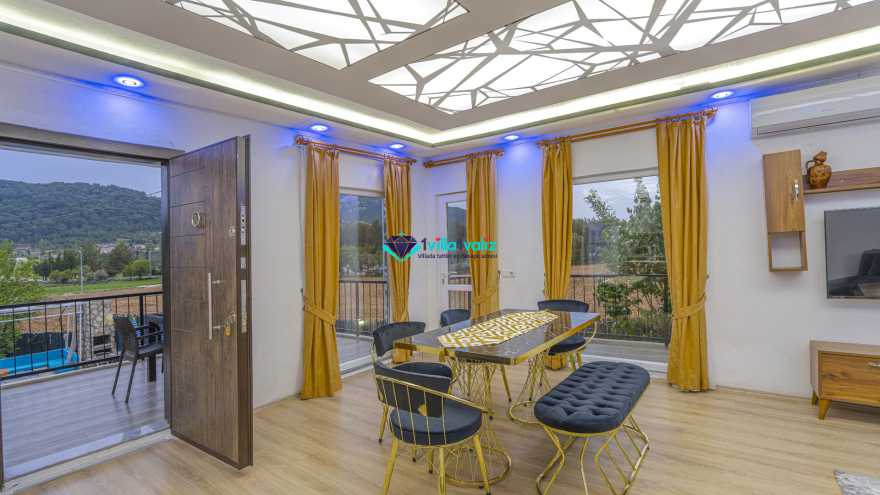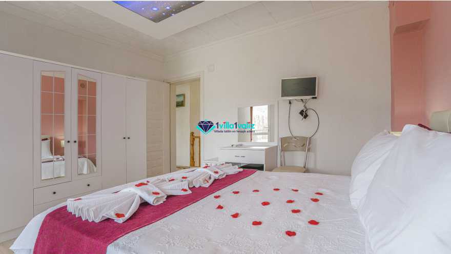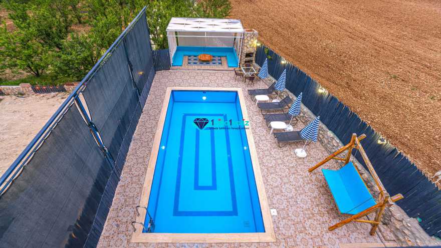 Not: Villamız, havuzu, yaşam alanı ve girişleri birbirinden bağımsız 2 villadan oluşan bir binada yer almaktadır. Binanın diğer tarafında 10 kişi kapasiteli Villa Süren Eco 2 bulunmaktadır. Bu villanın müsait olmadığı veya daha kalabalık olmanız durumunda diğer villamıza göz atabilirsiniz.