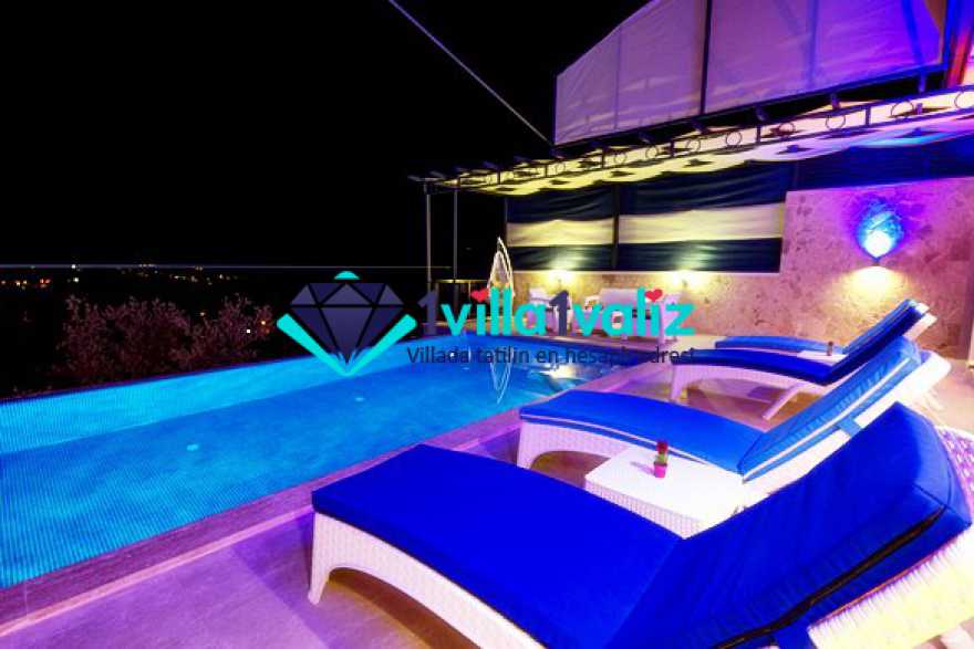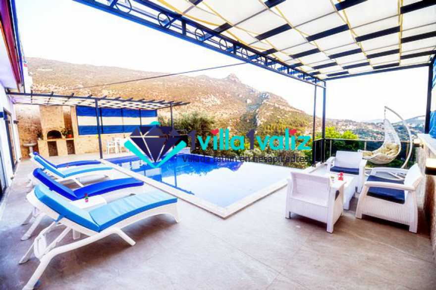 Villa Vadi, Kalkan/İslamlar mevkiinde bulunan 4 kişi kapasiteli ve 2 banyoya sahip korunaklı havuz alanına sahip bir villadır. Villamız korunaklı havuz alanına sahip olduğu için havuz terası dış ortamdan kesinlikle gözükmemektedir bu sayede tatilinizi yaparken dışarıdan kimse sizi rahatsız edemeyecektir. Villa Vadinin 2 kişilik yatak bulunan yatak odasına doğa manzarasına bakan muhteşem bir jakuzisi de bulunmaktadır.