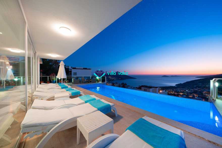 Kalkan'da bulunan lüks kiralık villamız Villa Waratah muhteşem deniz manzarası ile sizlere unutamayacağınız bir tatil imkanı sunuyor... 5 yatak odalı bulunan kiralık villamız 10 kişi konaklama kapasitelidir. Kalabalık aileler için uygun kiralık villamız lüks ve modern bir dizayna sahip olup, odaları oldukça geniş ve ferah bir yapıdadır. Sizlere kusursuz bir tatil imkanı sunabilmek adına her bir köşesi özenle dizayn edilmiş villamızda tatiliniz boyunca ihtiyacınız olabilecek tüm temel eşyalar mevcuttur. Oyun odalı kiralık villamızda masa tenisi, langırt ve koşu bandı gibi bir çok materyal mevcuttur. Deniz manzaralı kiralık lüks villamız Kalkan merkeze ve plaja yürüme mesafesinde bulunmaktadır.