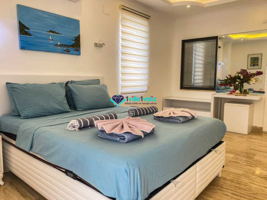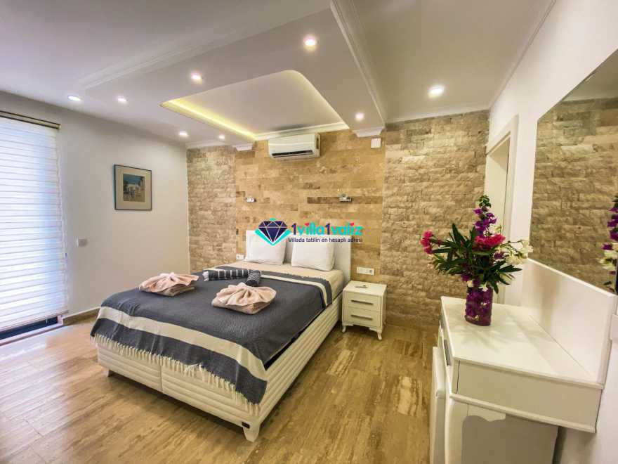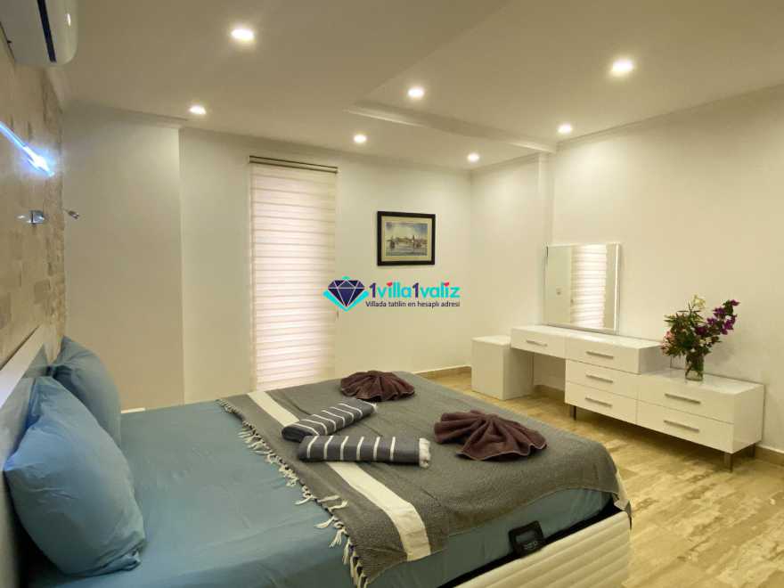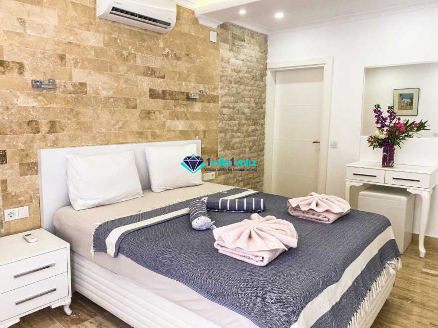 3. Yatak Odası : Çift kişilik yatak, elbise dolabı, komodin, makyaj masası, klima, banyo ve tuvalet bulunmaktadır.