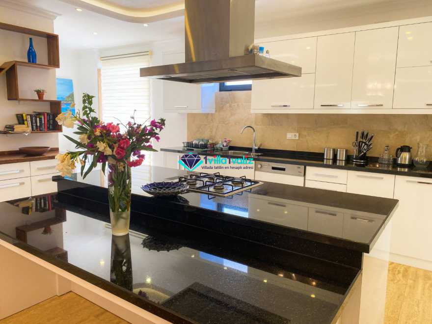 Mutfak : Modern Amerikan mutfağında, buzdolabı, bulaşık makinesi, çamaşır makinesi, ekmek kızartma makinesi, fırın, elektrikli su ısıtıcısı, 4’lü ocak,yemek takımı, tava, tencereler, çatal, bıçak takımları bulunmaktadır.