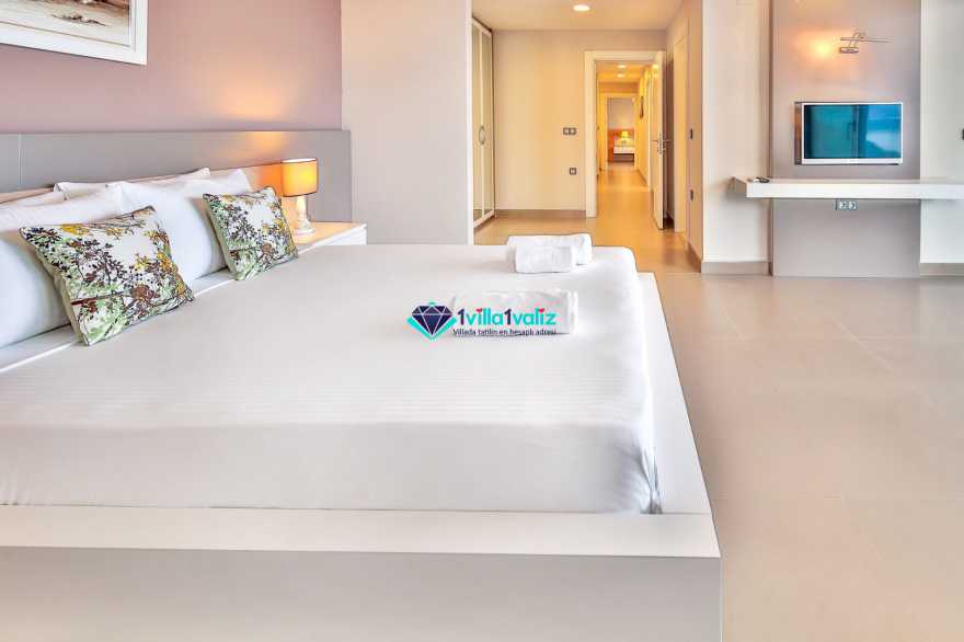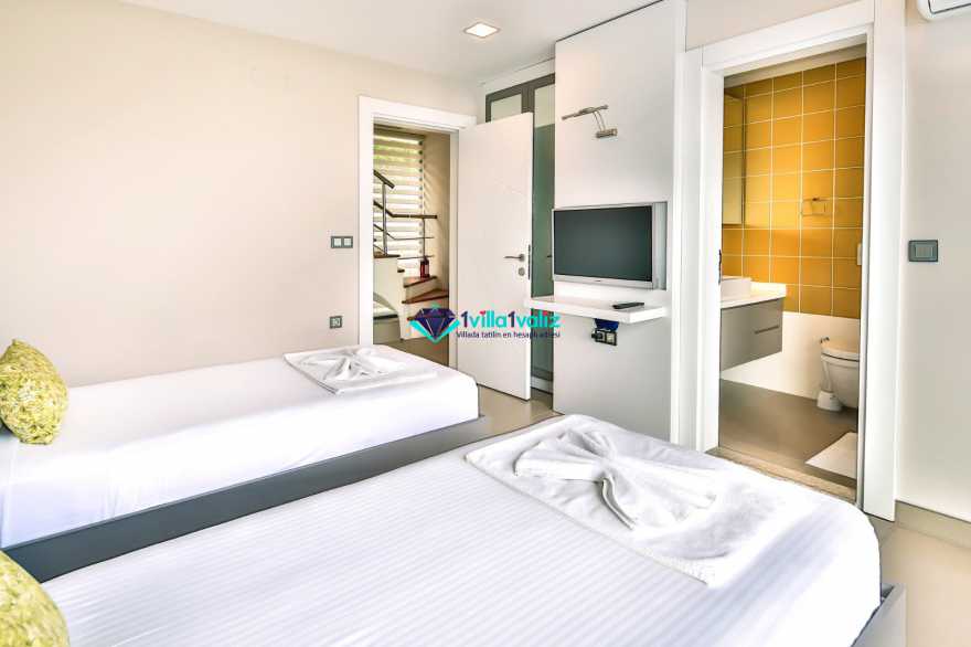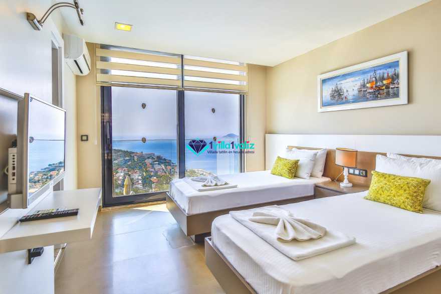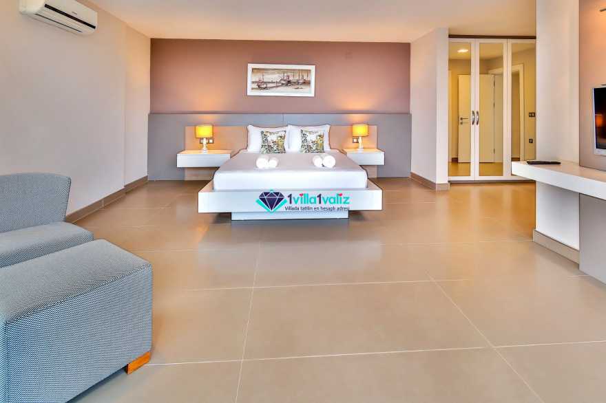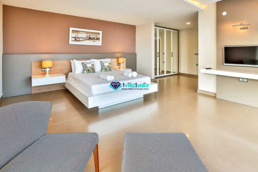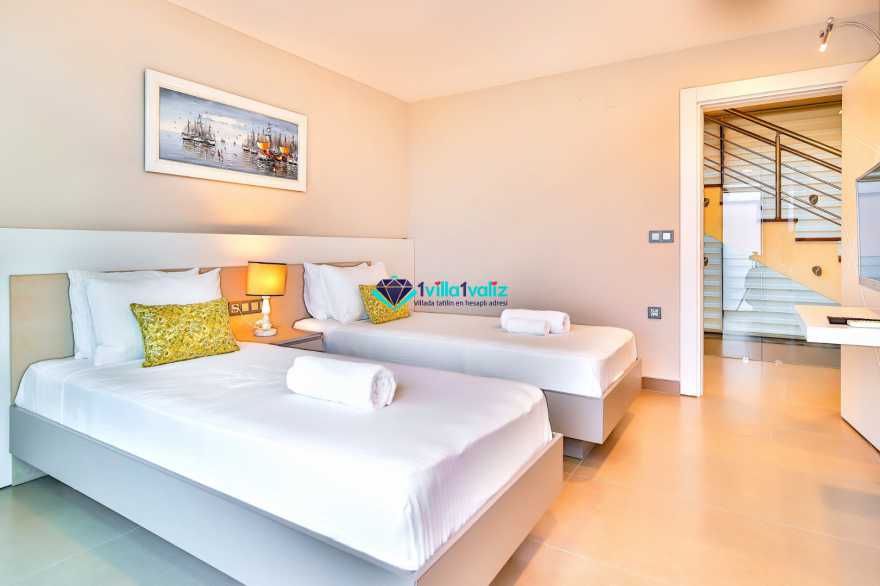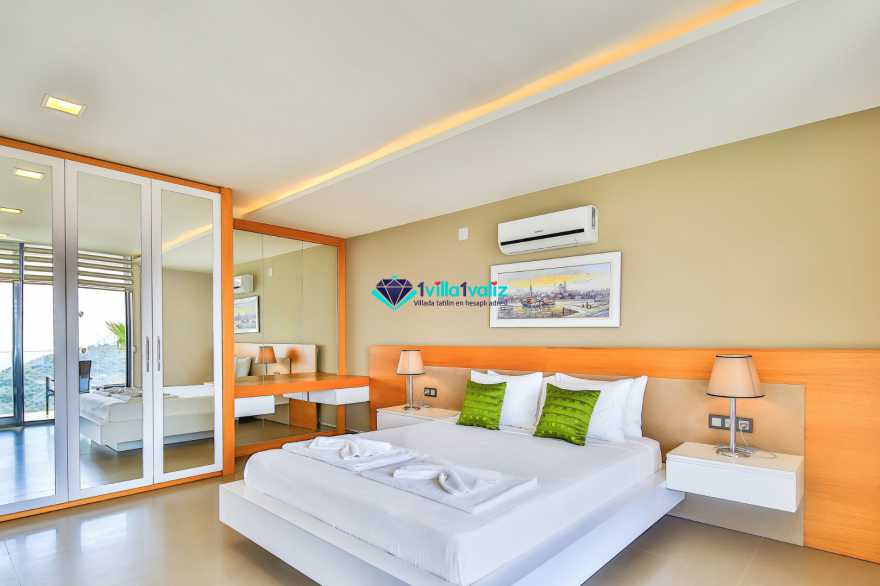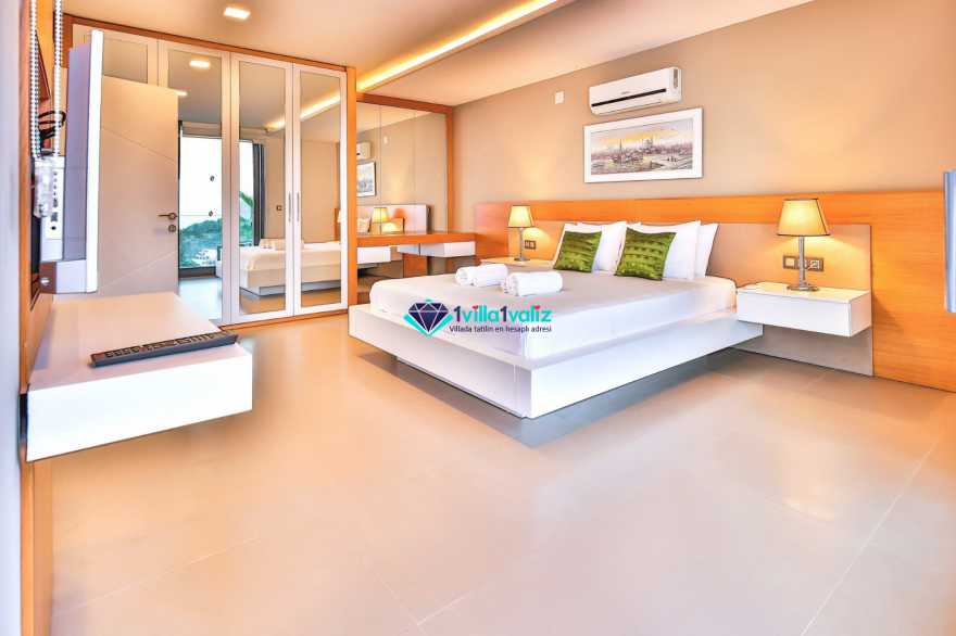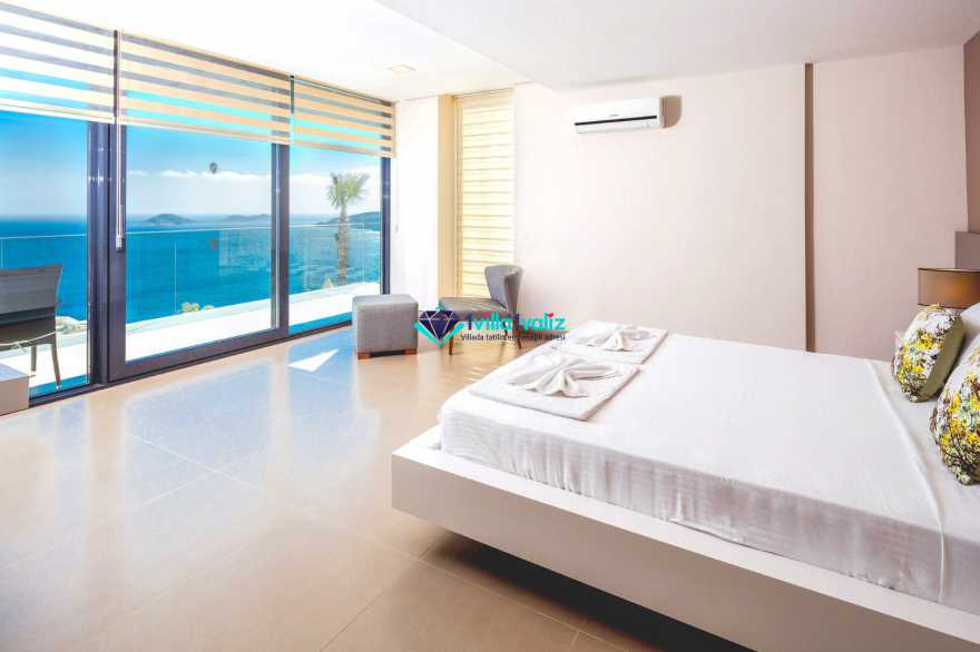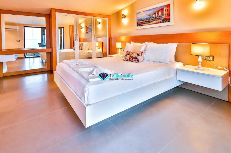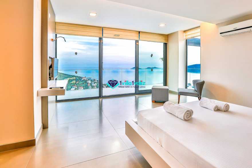 Bu lüks deniz manzaralı kiralık villa, 4 yatak odalı olup 8 kişilik kapasiteye sahiptir. Hem kalabalık arkadaş grupları için ideal hem de geniş aileler için uygun bir villadır.
