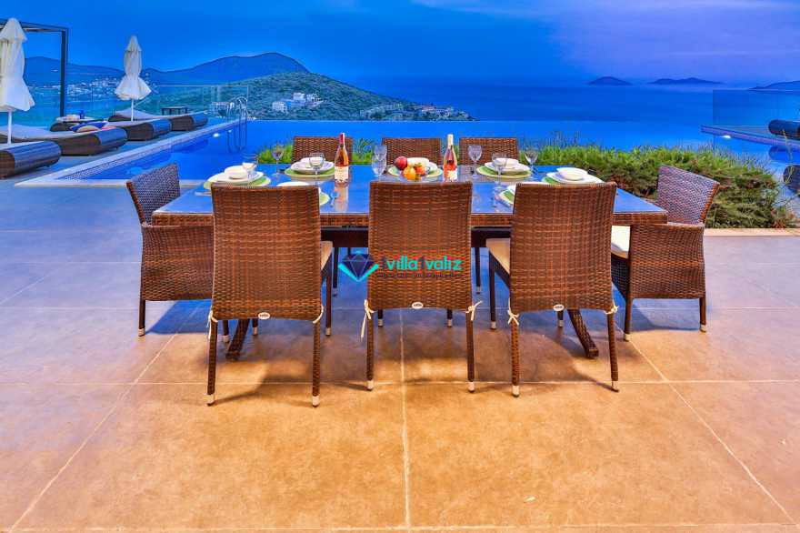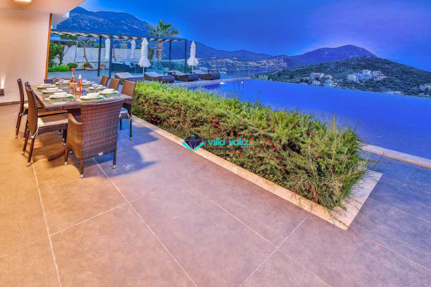 Villa Zaffre, Kalkan Kalamar koyuna bakan konumdaki muhteşem deniz manzarasına sahiptir. Bu özel konumdan dolayı Kalkan merkeze, bir çok plaj ve restorana oldukça yakın yürüyüş mesafesindedir. Villa Zaffre lüks dekorasyonu ile fark yaratan bir villadır.