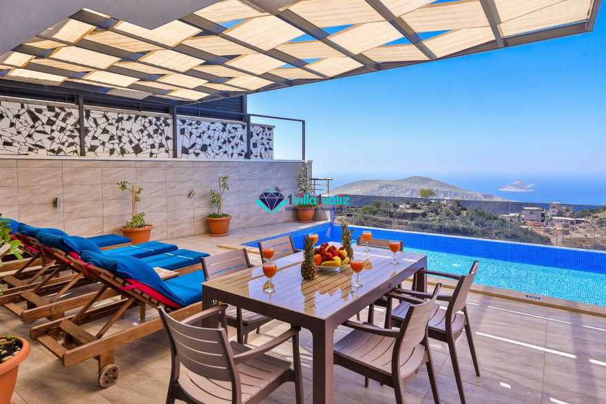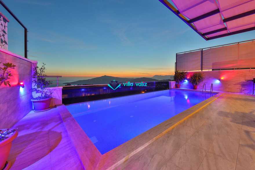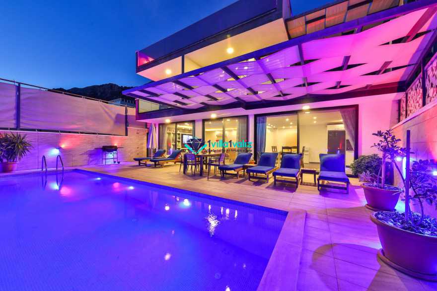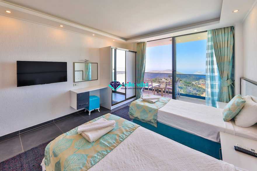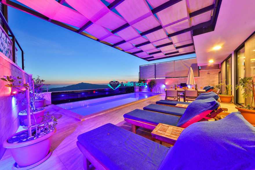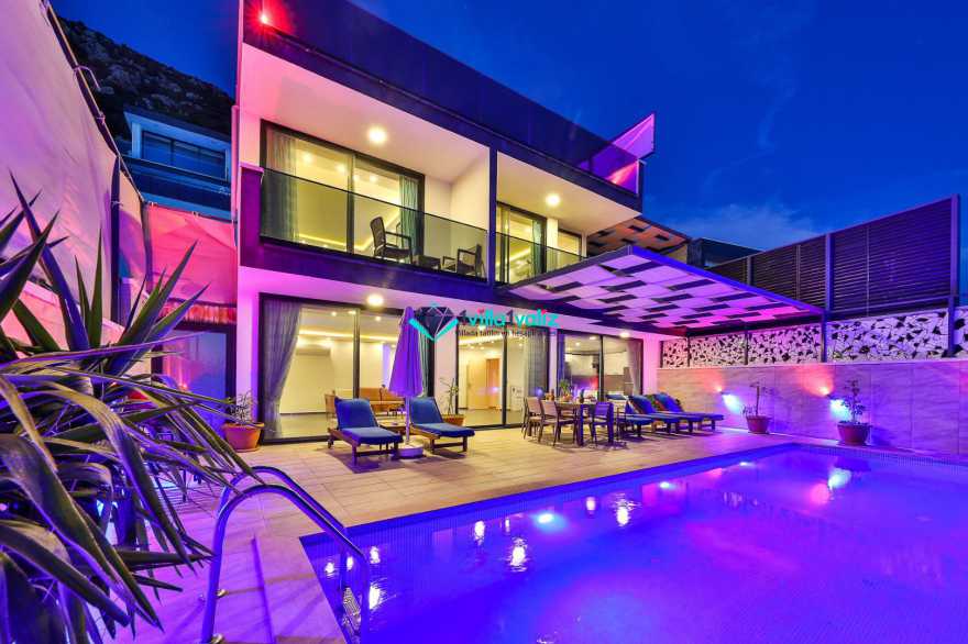 Kiralık villamız Kalkan Kördere mevkisinde konumlanmıştır. Villamız 3 yatak odalı 6 kişilik kapasiteye sahiptir. Sizin kusursuz bir tatil geçirmeniz için her şey düşünülmüş en suit odamızda jakuzide bulunmaktadır. Ayrıca özenle dizayn edilmiş olan villamız da bilardo masası ve langırt da bulunmaktadır. Balayı villası olarak tercih edilen Villa Zaza muhteşem deniz manzarası ve gün batımı manzarası ile sizlere sunulmaktadır. Özel yüzme havuzu tamamen korunaklı olup dışarıdan gözükmemekte olup iç kısmında ısıtmalı havuzu da bulunmaktadır.