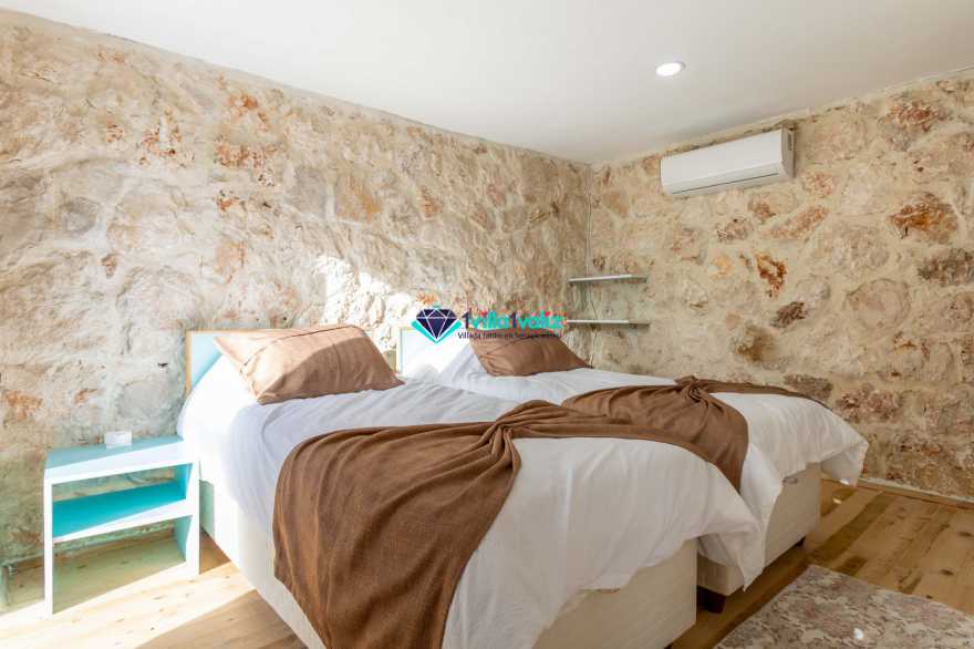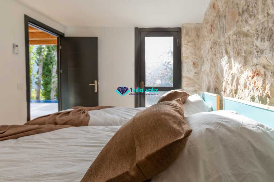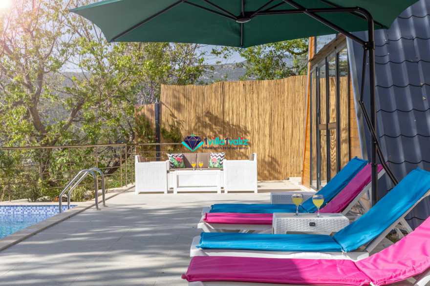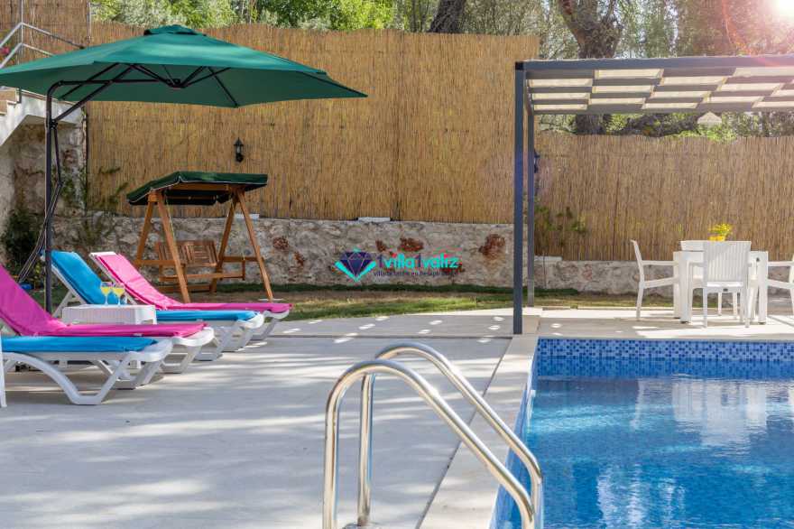 2 yatak odasına sahip olup 4 kişilik konaklama kapasitesine sahip bir villamızdır. 2021 yılında inşaa edilen bu tatil villamız eşsiz konumu, mimarisi ve bahçe alanı ile siz değerli misafirlerimize tatil yaptığınızı hissettirecek bir konsepte sahiptir. Havuz alanı dışarıdan görünmeyecek şekilde inşaa edilmiş olup mufazakar ailelerimiz içinde uygun hale getirilmiştir.