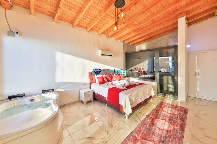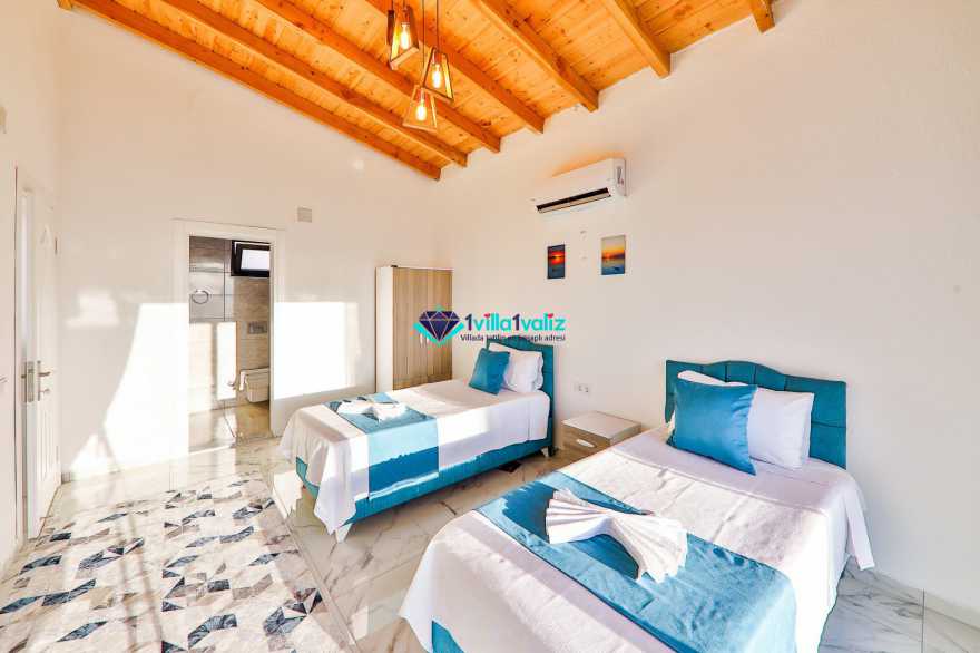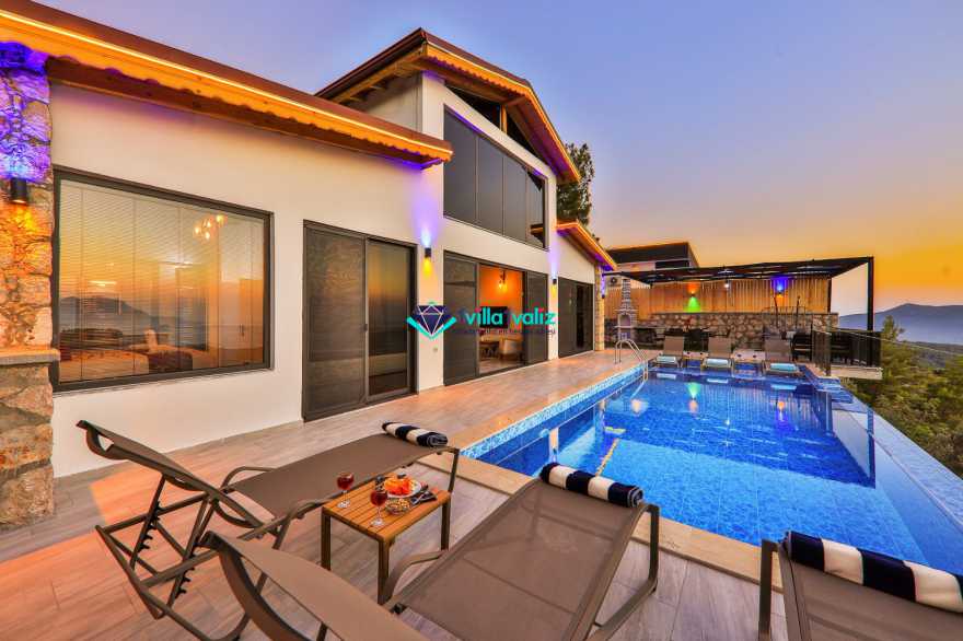 Kalkan Üzümlü köyünde bulunan 2 yatak odalı 4 kişilik yeni yapılmış muhafazakar korunaklı villamız doğa manzarasına ve panoramik patara deniz manzarasına sahiptir. Villamızın bahçesinde salıncak ve masa tenisi bulunmakta olup tatil süreniz içersin de keyifli bir vakit geçirmenizi sağlayacaktır. Villamız Muhafazakar olup Balayı tatili düşünen çiftlerimiz içinde oldukça uygun bir villa seçeneğimizdir.