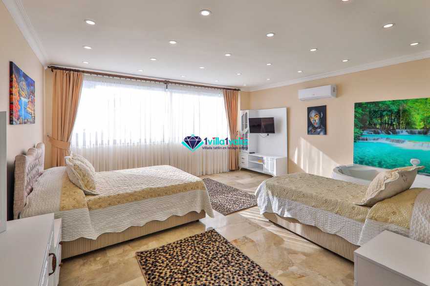 1.Yatak Odası: 1 adet çift kişilik yatak, televizyon, klima, jakuzi,kapalı ısıtmalı havuzu elbise dolabı, makyaj masası, banyo ve lavabo bulunmaktadır.