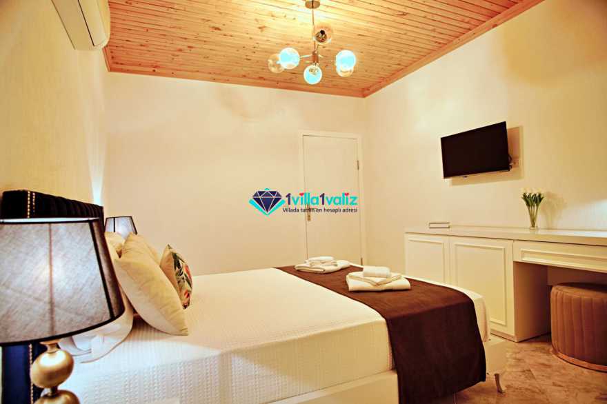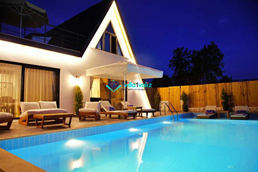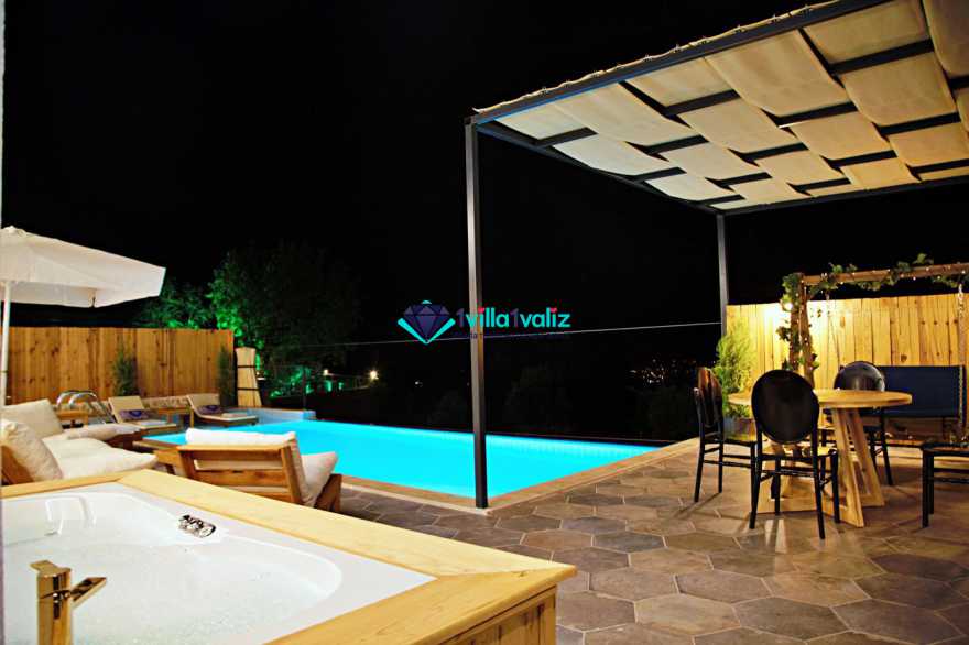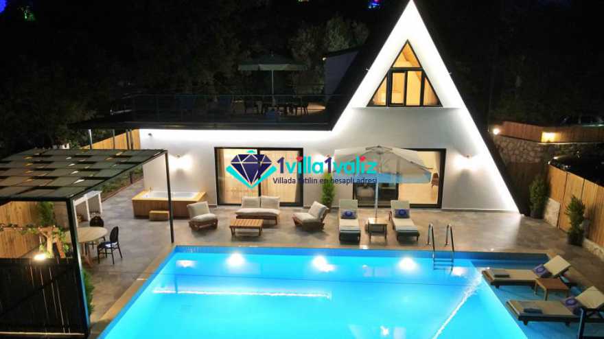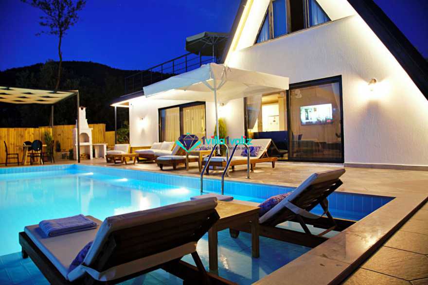 Kalkan Üzümlü'de farklı mimariye sahip 2 yatak odalı 4 kişilik kapasiteli villamız Villa İlkyaz,havuzu korunaklı villalarımzı arasındadır.Villamızın hem havuz başında hem de ana yatak odasında jakuzisi bulunmaktadır.Balayı çiftleri ve çekirderk aileler için uygun bir seçim olan villamızın terasıda mevcuttur.